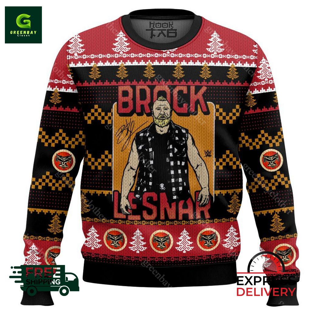 Introducing the iconic Brock Lesnar Ugly Christmas Sweater, the ultimate festive attire for wrestling enthusiasts and holiday cheer lovers alike! Our premium-quality sweater is meticulously crafted with the finest materials, ensuring unparalleled comfort and durability. Whether you’re attending a grand holiday party or simply lounging around the house, this sweater is guaranteed to spread laughter and merriment. With its vibrant colors, bold graphics, and tongue-in-cheek design, it’s the perfect way to show off your love for the Beast Incarnate and embrace the festive spirit. Priced affordably and backed by our commitment to customer satisfaction, we offer only the best quality products. Our US-based business ensures fast and reliable shipping, reaching wrestling fans worldwide. Don’t miss out on the opportunity to own this iconic piece of wrestling merchandise, the perfect gift for yourself or the Lesnarologist in your life!