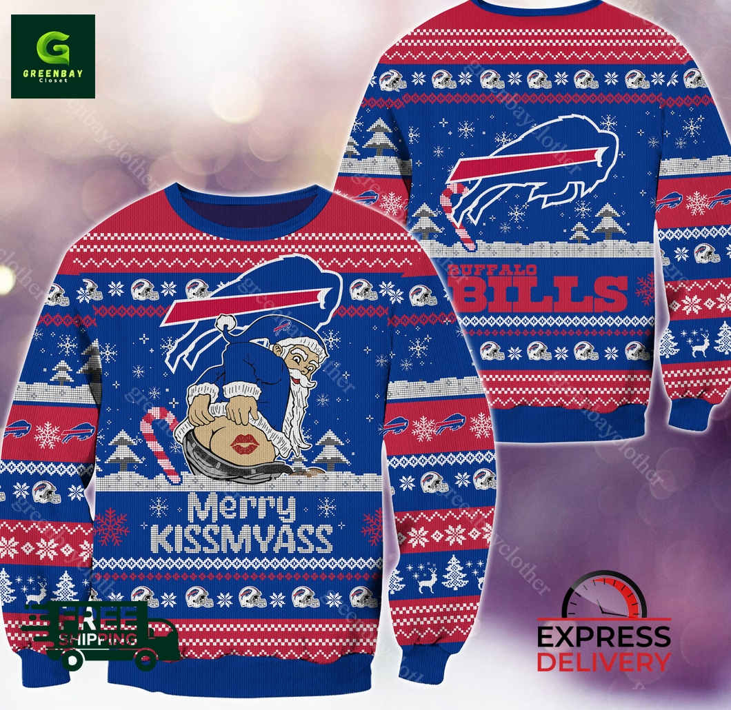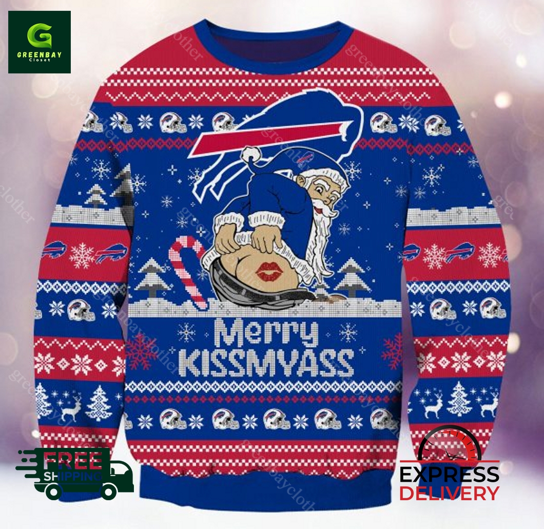 Buffalo Bills NFL Merry Kissmyass Knit Pattern Ugly Sweater