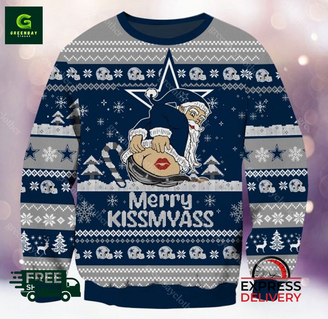 Dallas Cowboys NFL Merry Kissmyass Knit Pattern Ugly Sweater product shipping: