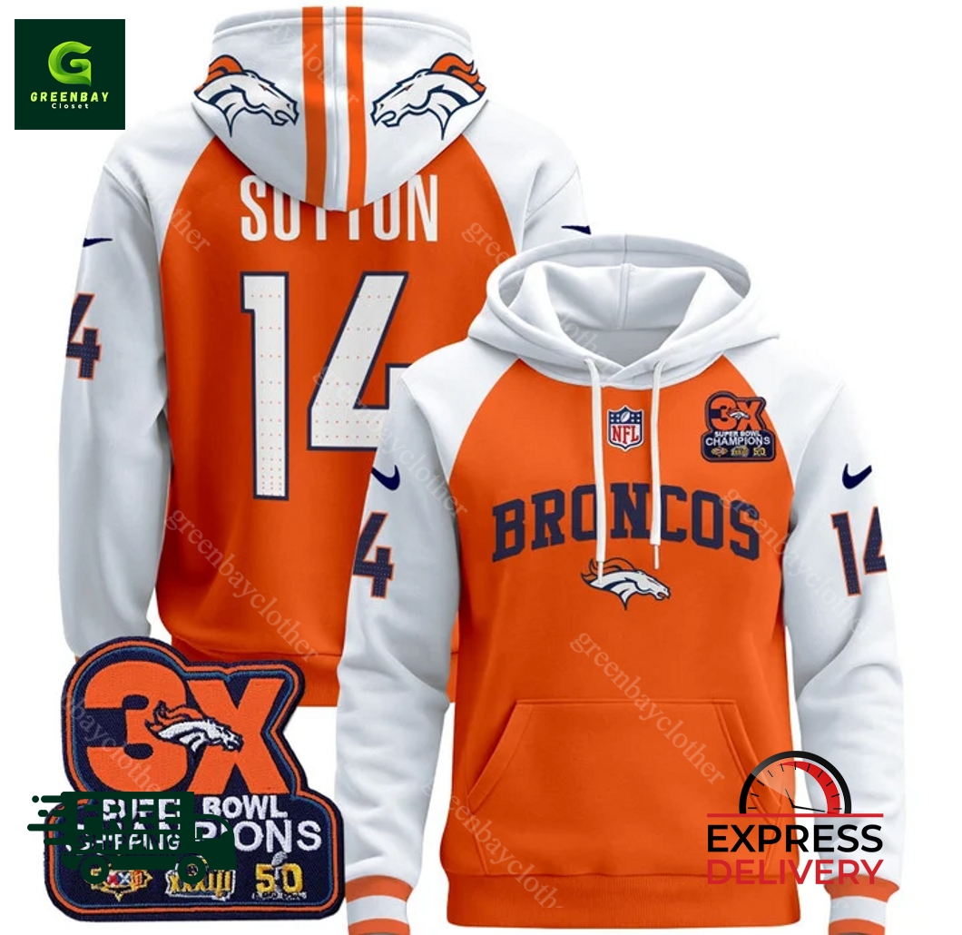 PRODUCT INFORMATION Denver Broncos 2024 3X Supper Bowl Champion Courtland Sutton Orange Alternate Hoodie: