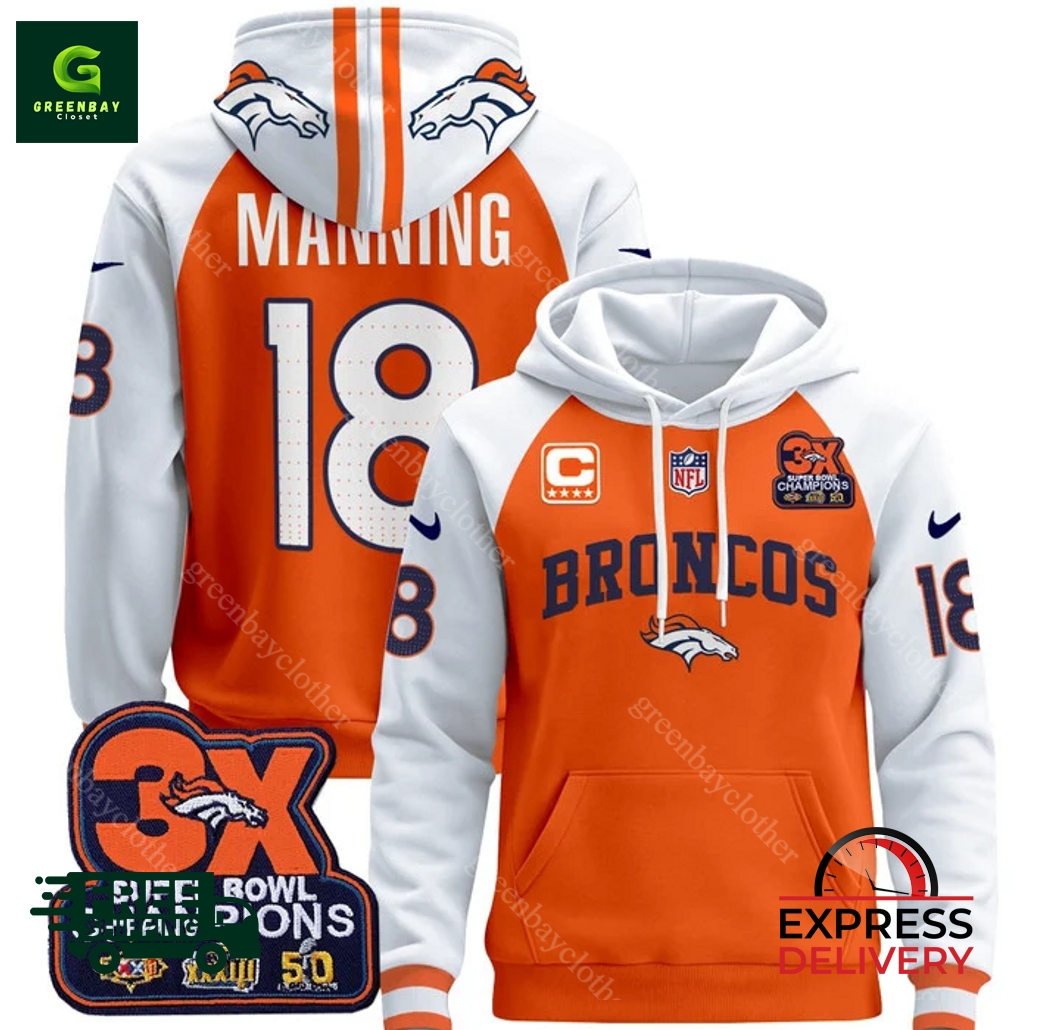 Suitable for a variety of occasions Denver Broncos 2024 3X Supper Bowl Champion Peyton Manning Orange Alternate Hoodie: