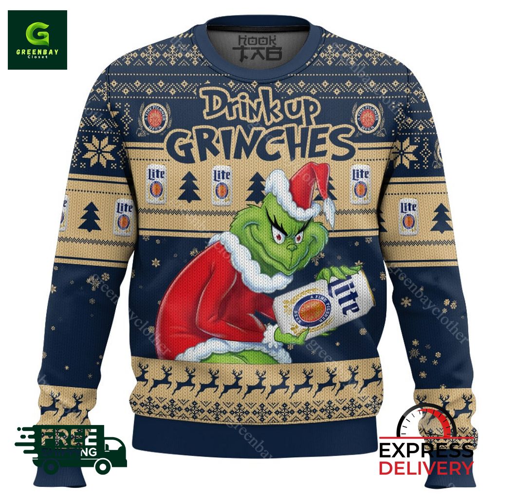 Drink Up Grinches Miller Lite Ugly Christmas Sweater product shipping: