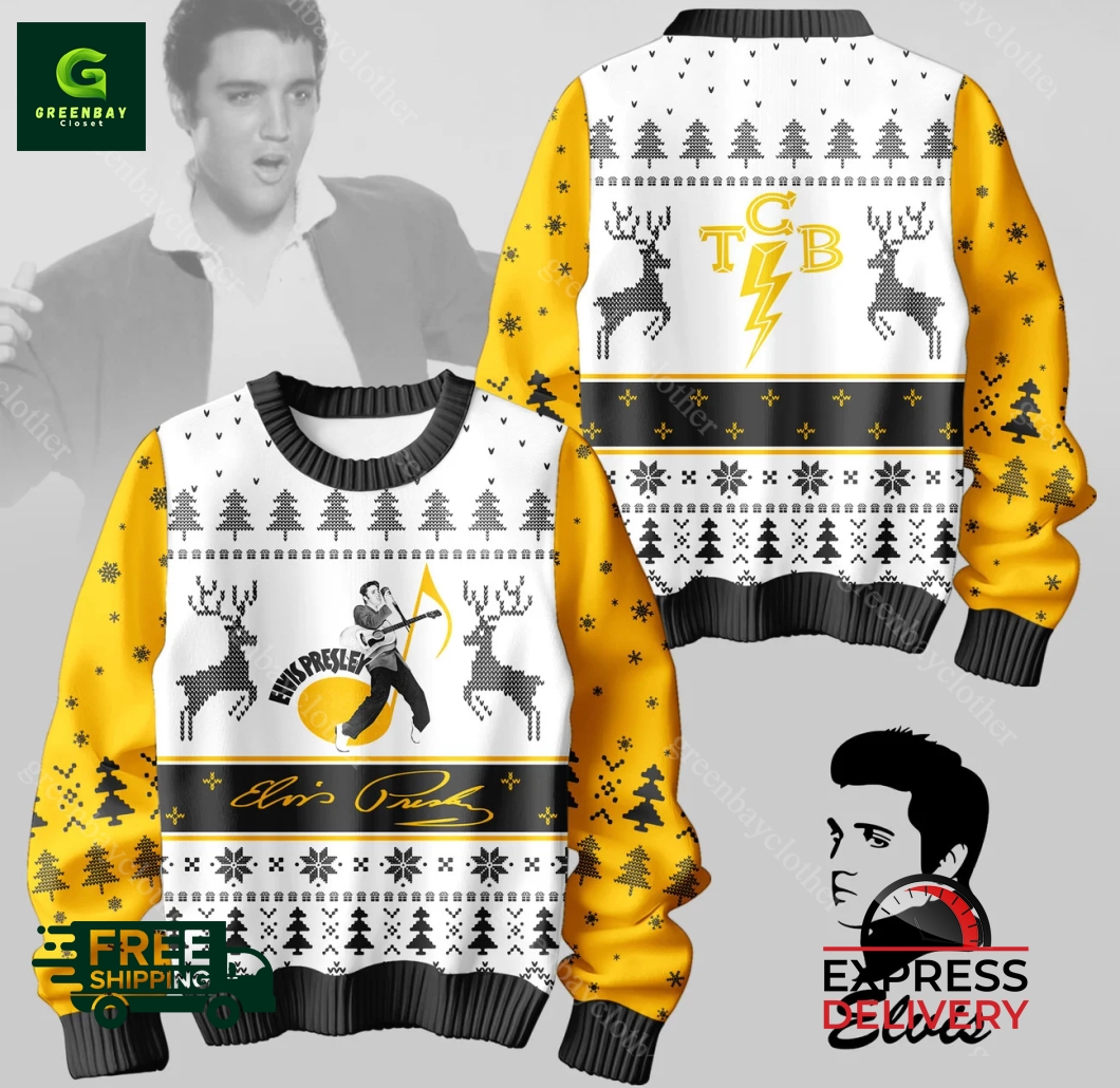 Elvis Presley TCB Ugly Christmas Sweater product shipping:
