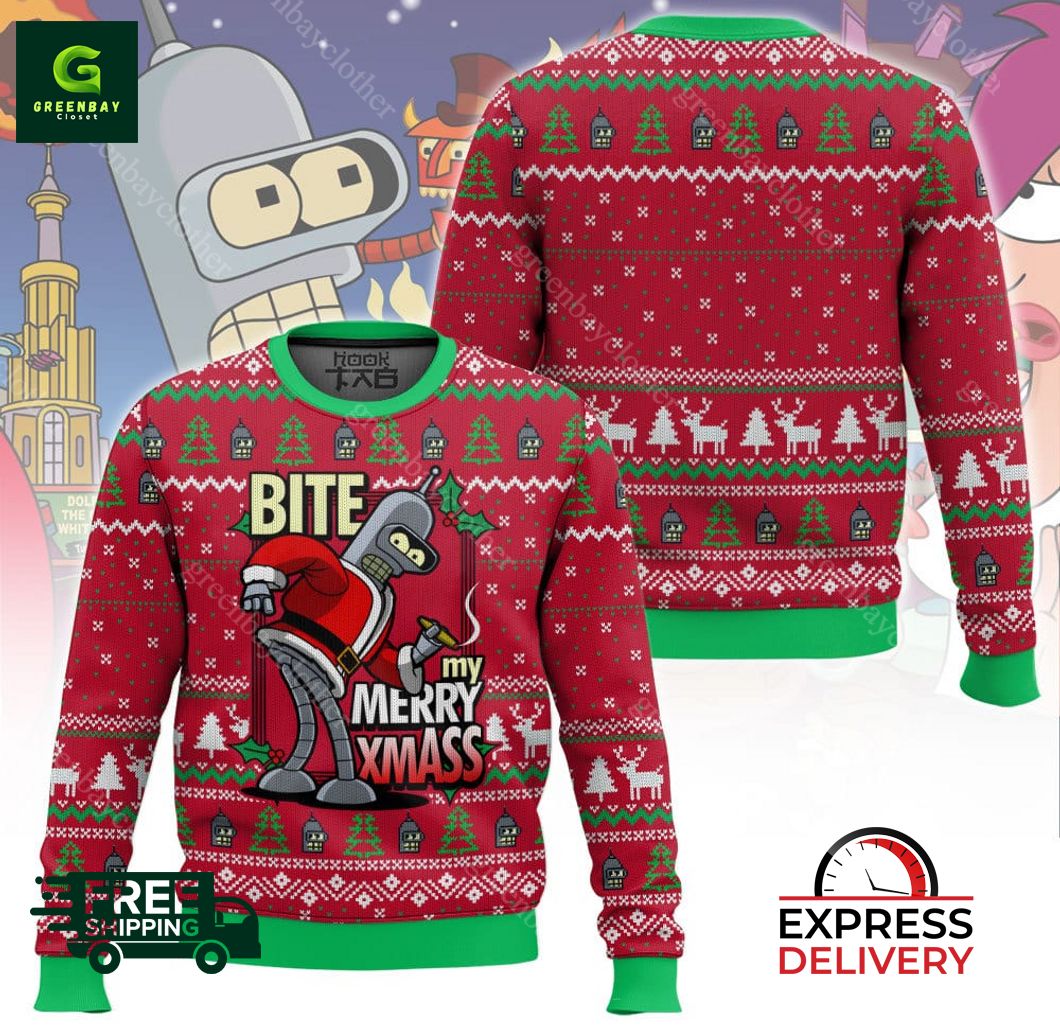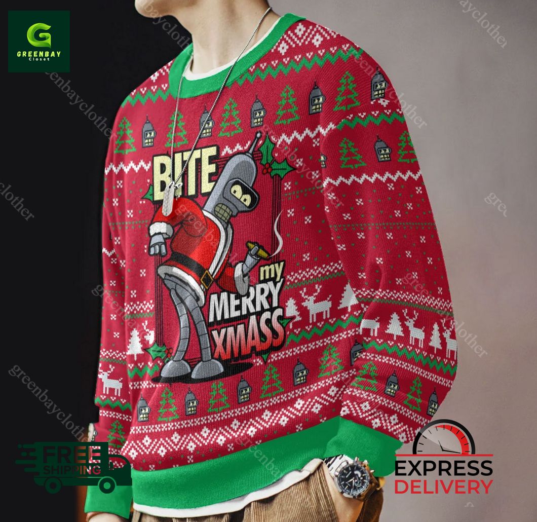 Futurama, Bite My Merry XmASS Ugly Christmas Sweater product shipping: