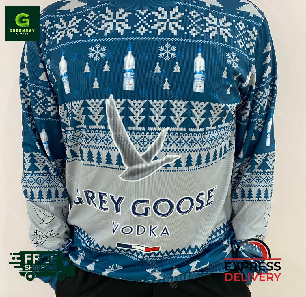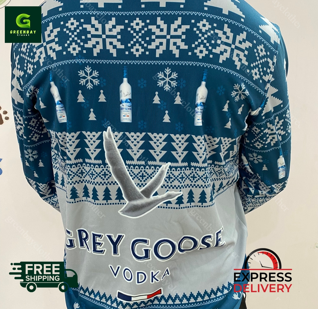 Introducing the Grey Goose Vodka Ugly Christmas Sweater, the perfect way to spread holiday cheer and indulge in your favorite vodka. This festive sweater features an eye-catching design with intricate snowflakes, playful reindeer, and the iconic Grey Goose logo. Made from a soft and comfortable blend of cotton and acrylic, it’s perfect for keeping you warm and cozy on chilly winter days. Whether you’re attending an ugly Christmas sweater party, meeting up with friends, or just running errands, this sweater is sure to turn heads and bring a smile to everyone’s face. Pair it with your favorite jeans or a festive skirt, and you’ll be the star of any holiday gathering. Imagine the compliments and admiration you’ll receive as you spread holiday cheer in style. The Grey Goose Vodka Ugly Christmas Sweater is the must-have item of the season, so don’t miss out on the opportunity to own one today!