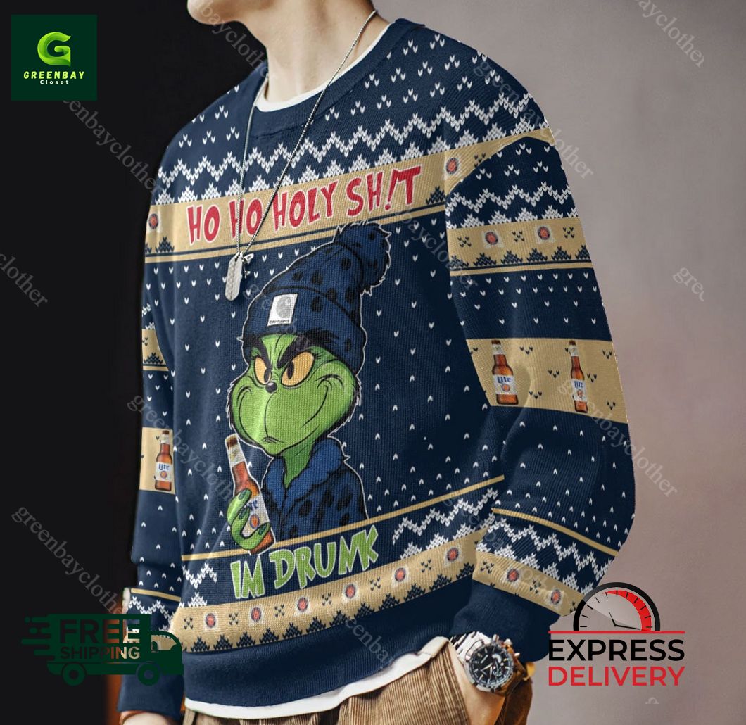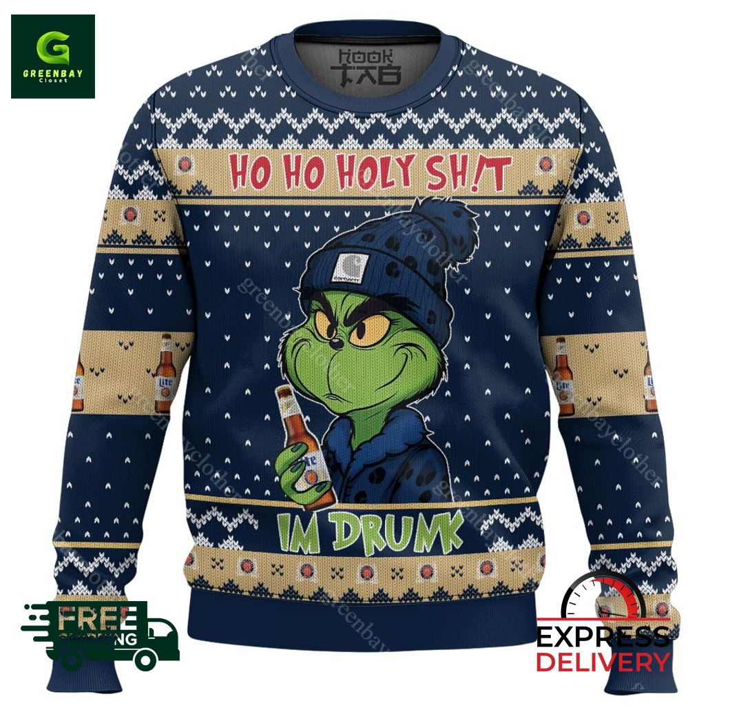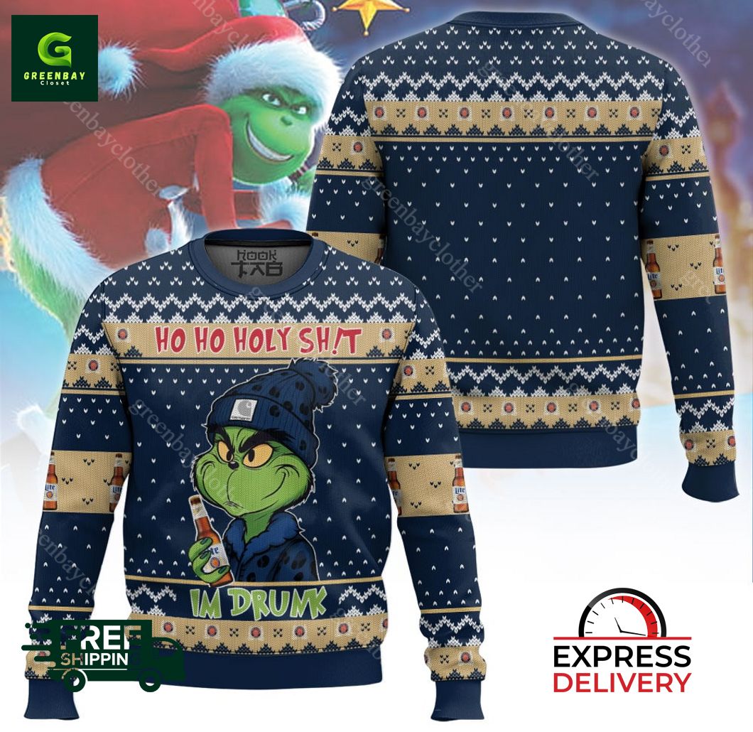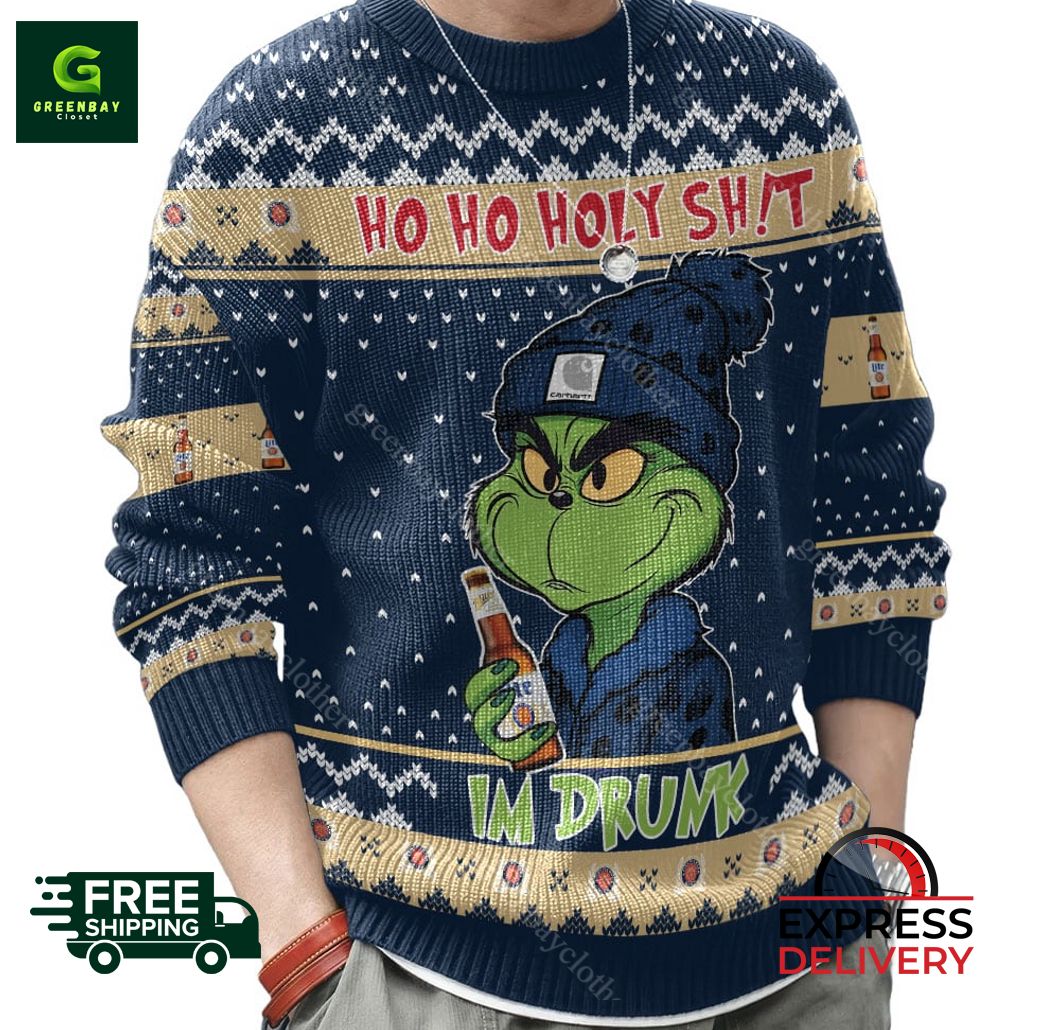 Ho Ho Holy Sh!t Im Drunk Miller Lite Grinch Ugly Christmas Sweater