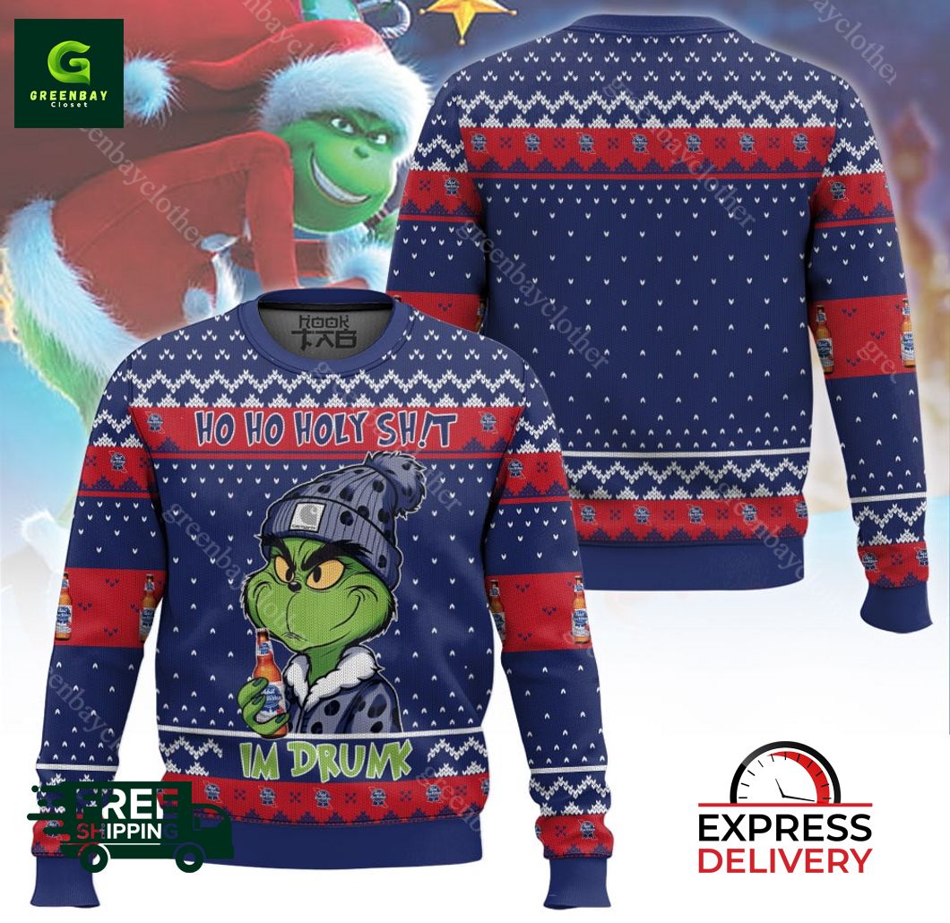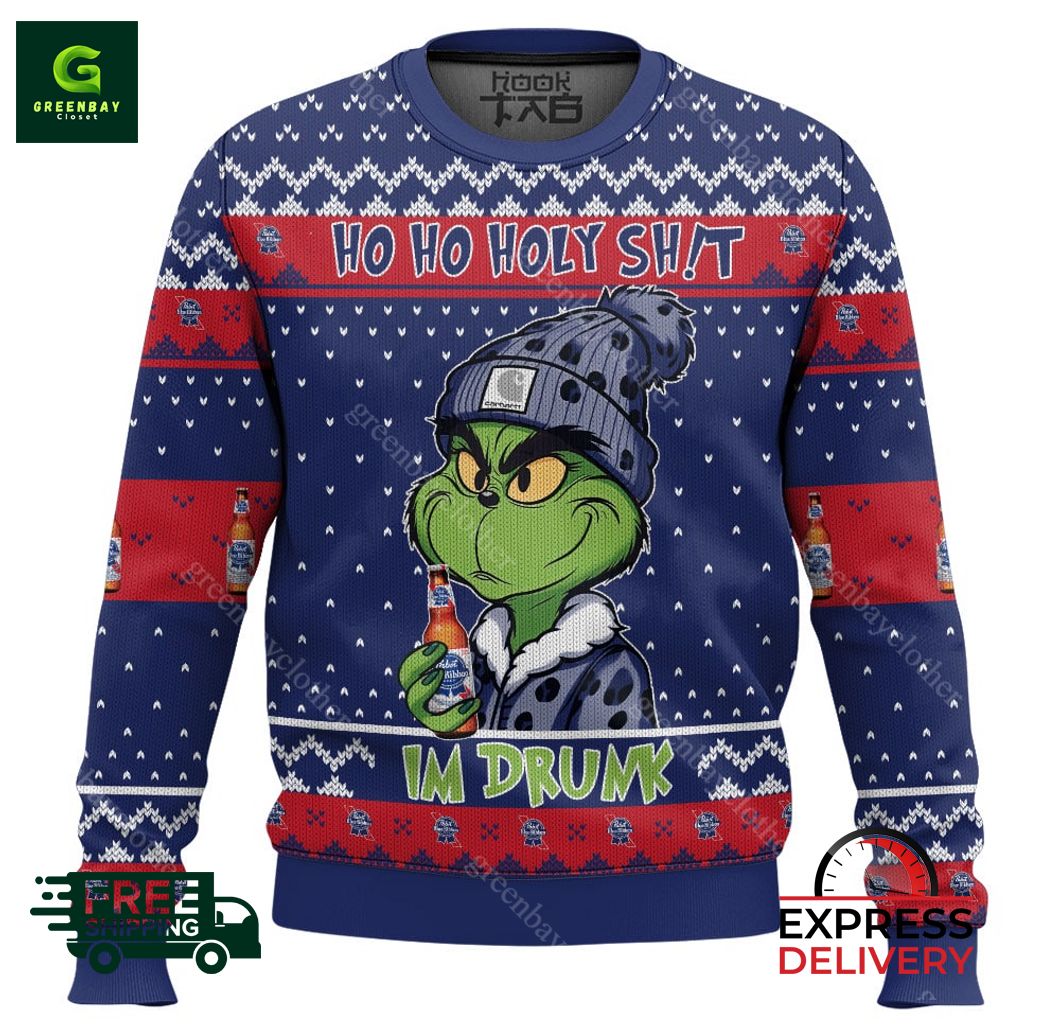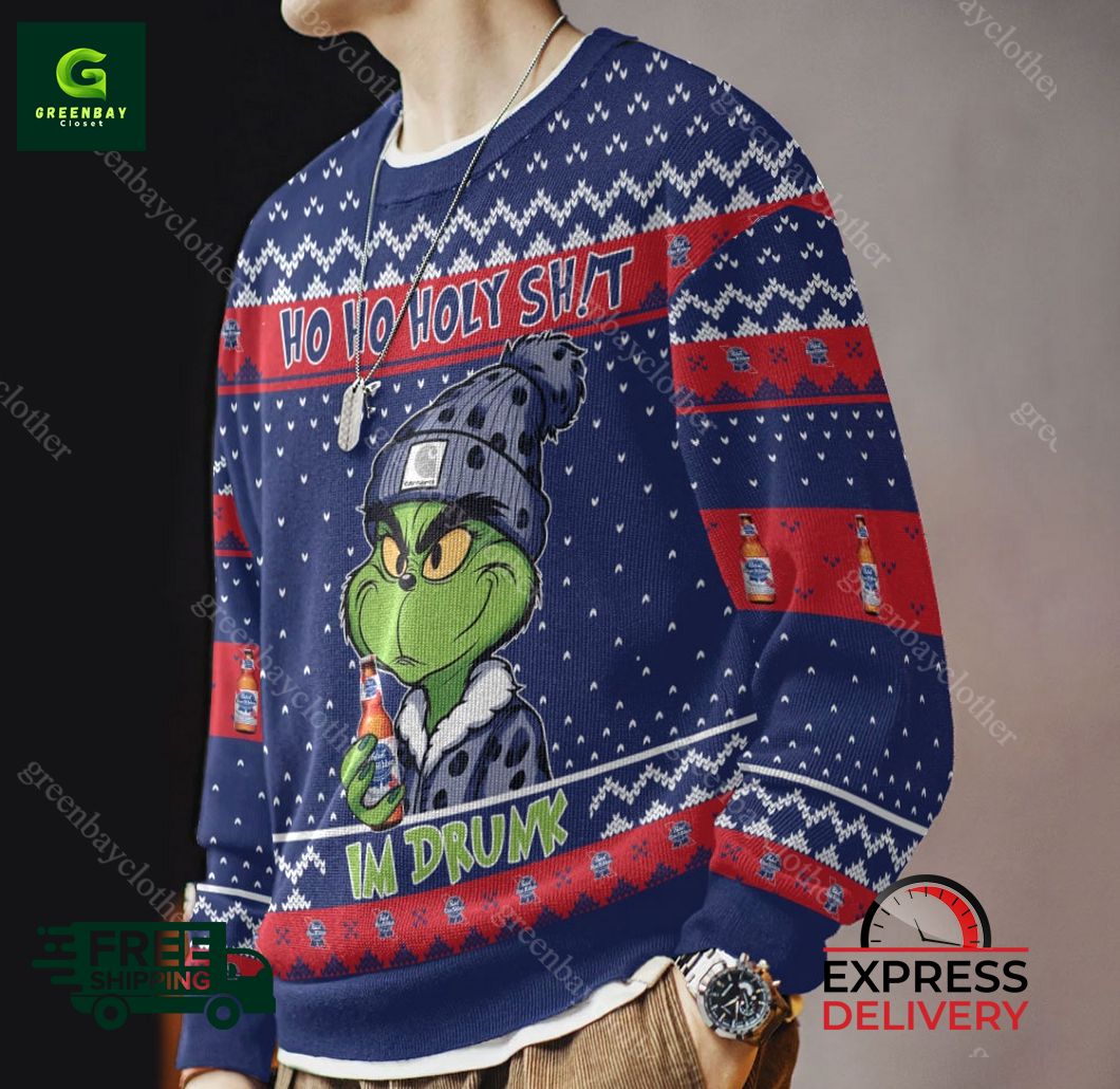Ho Ho Holy Sh!t Im Drunk Pabst Blue Ribbon Grinch Ugly Christmas Sweater product shipping: