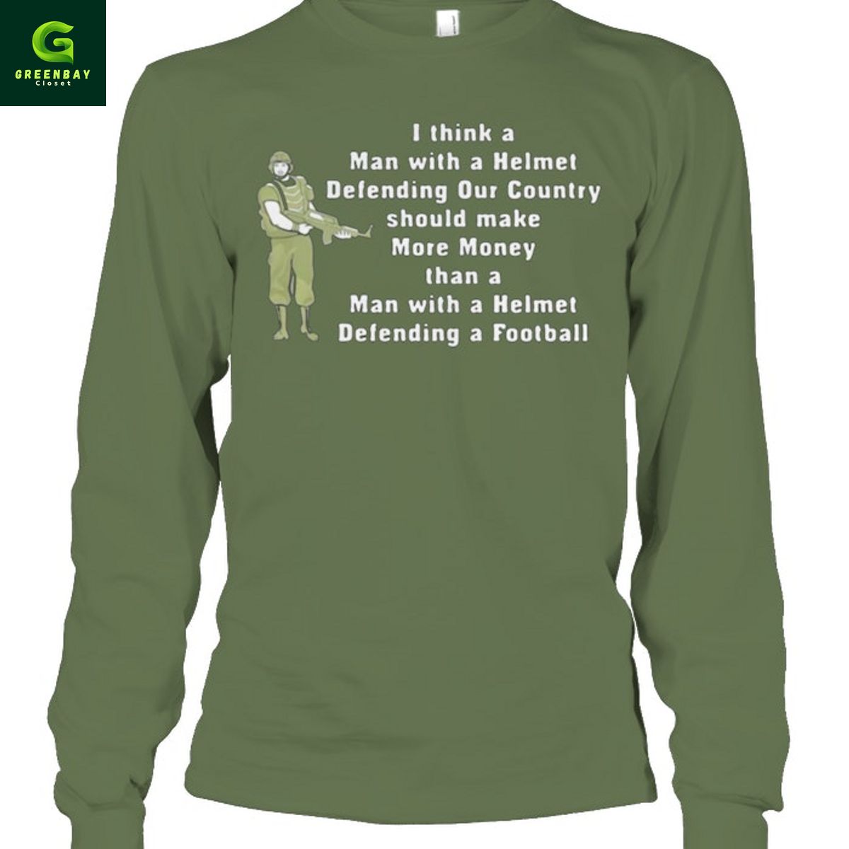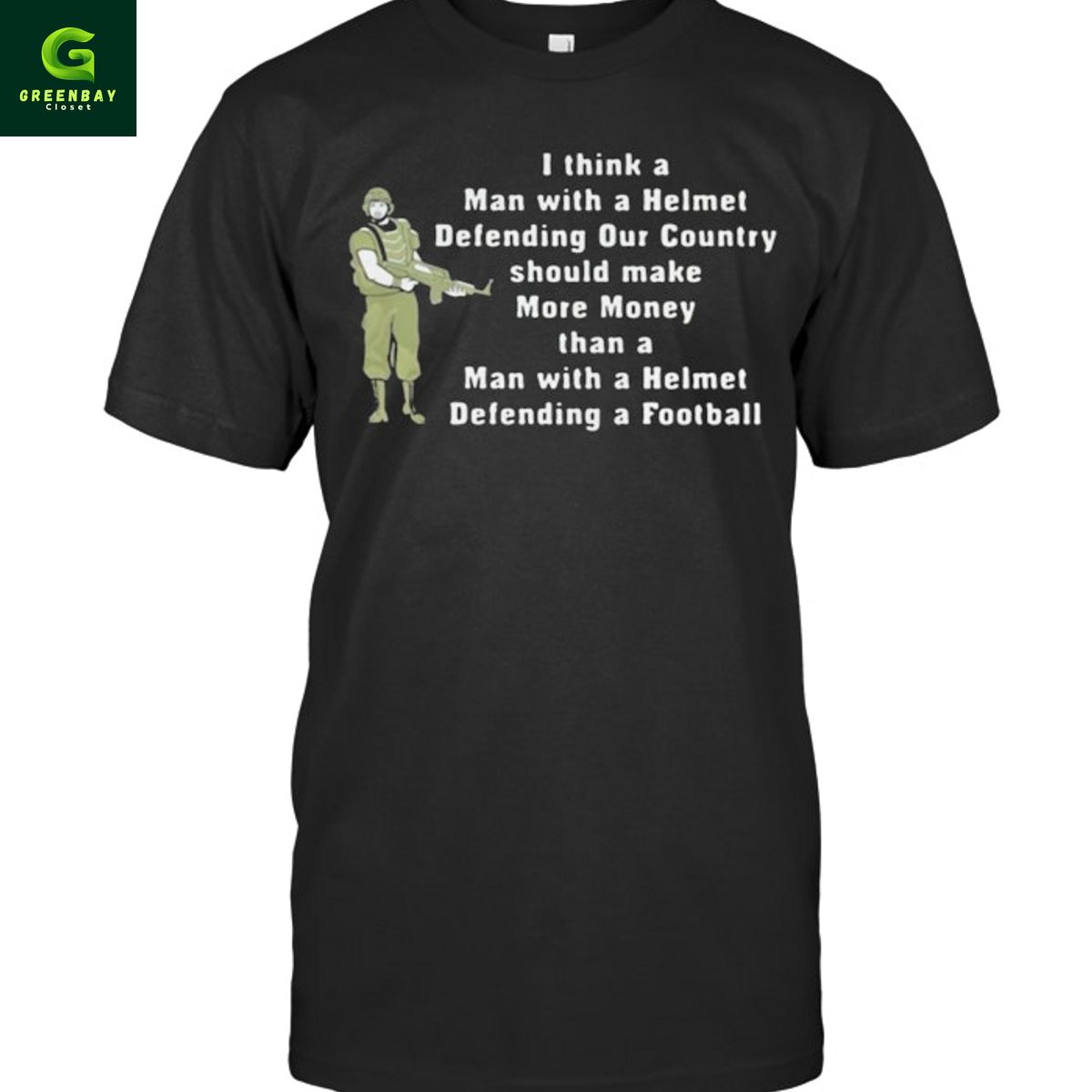 I think a man with a Helmet Defending our country should make more money than a man with a Helmet defending a football shirt description