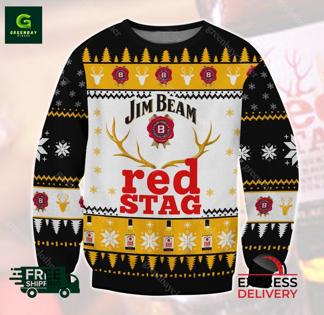 Jim Beam Red Stag Whiskey Ugly Christmas Sweater product shipping: