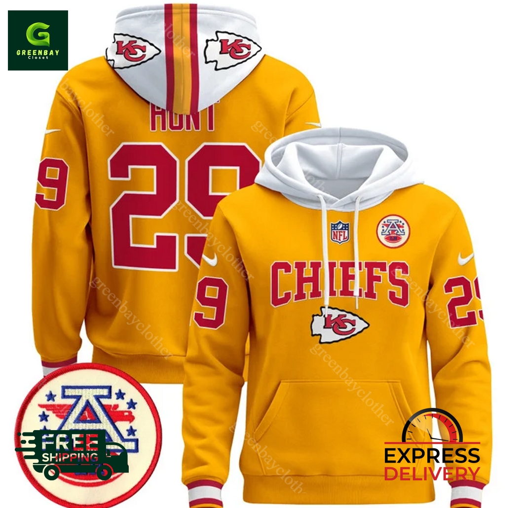 Kansas City Chiefs 2024 Kareem Hunt Gold Pullover Hoodie product shipping: