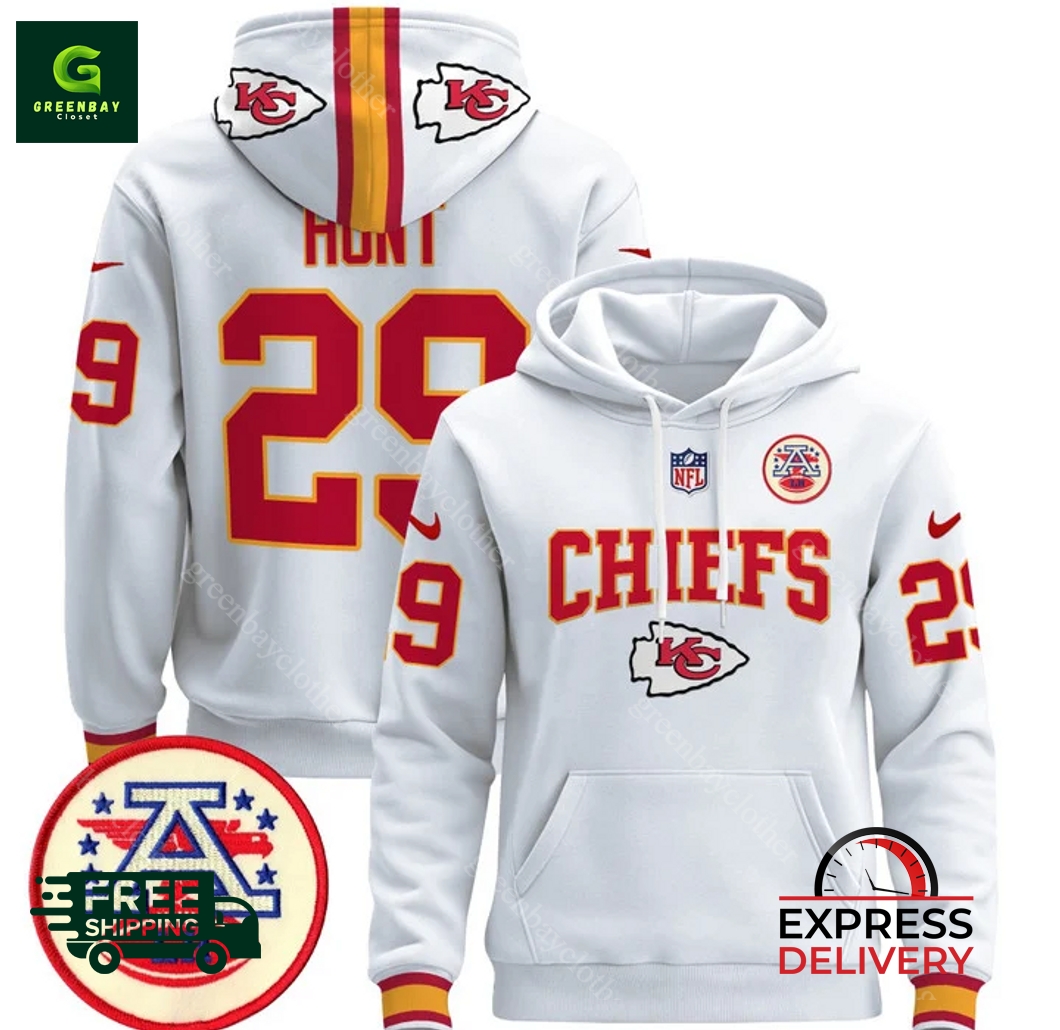Suitable for a variety of occasions Kansas City Chiefs 2024 Kareem Hunt White Pullover Hoodie: