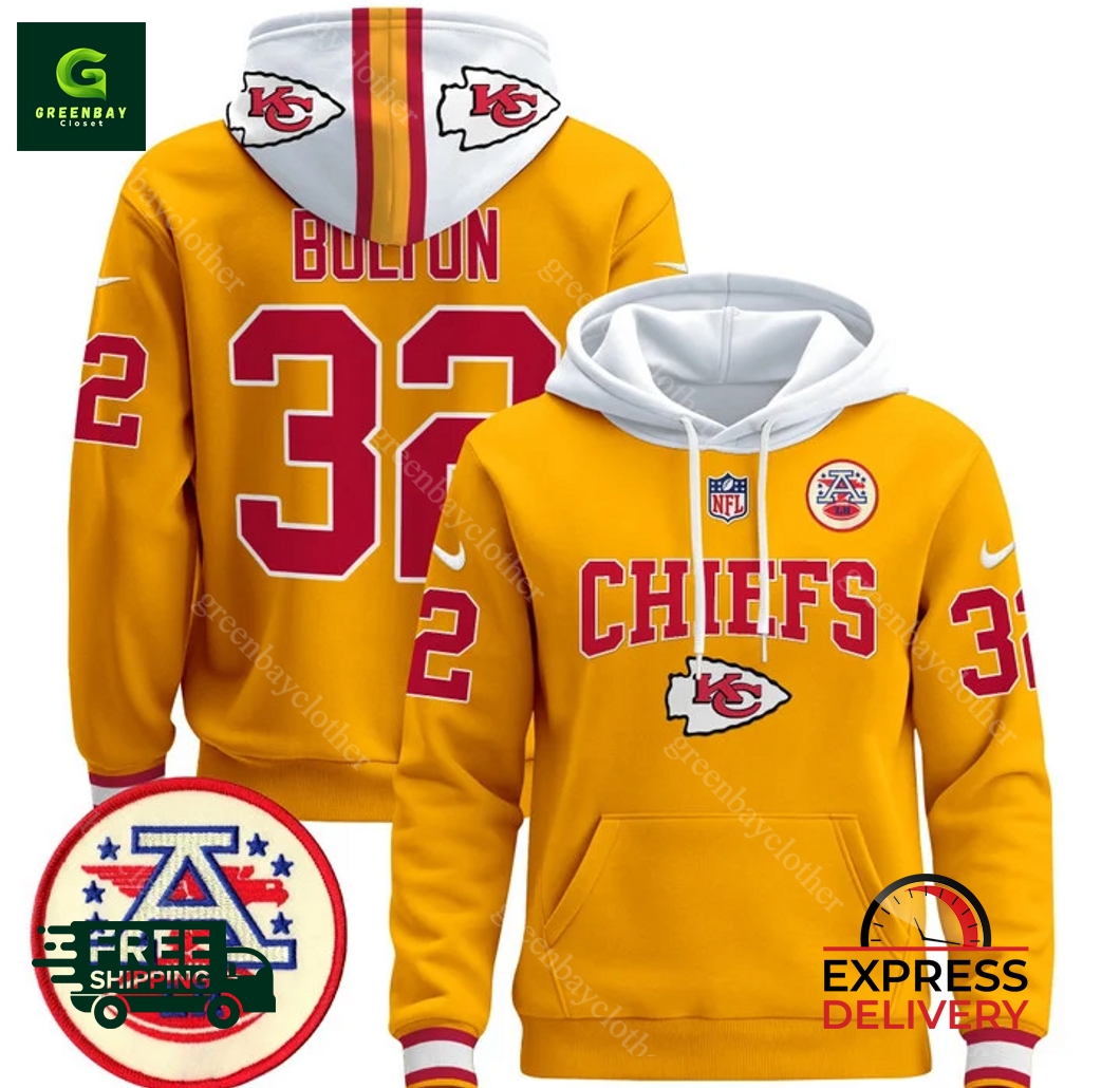 Suitable for a variety of occasions Kansas City Chiefs 2024 Nick Bolton Gold Pullover Hoodie: