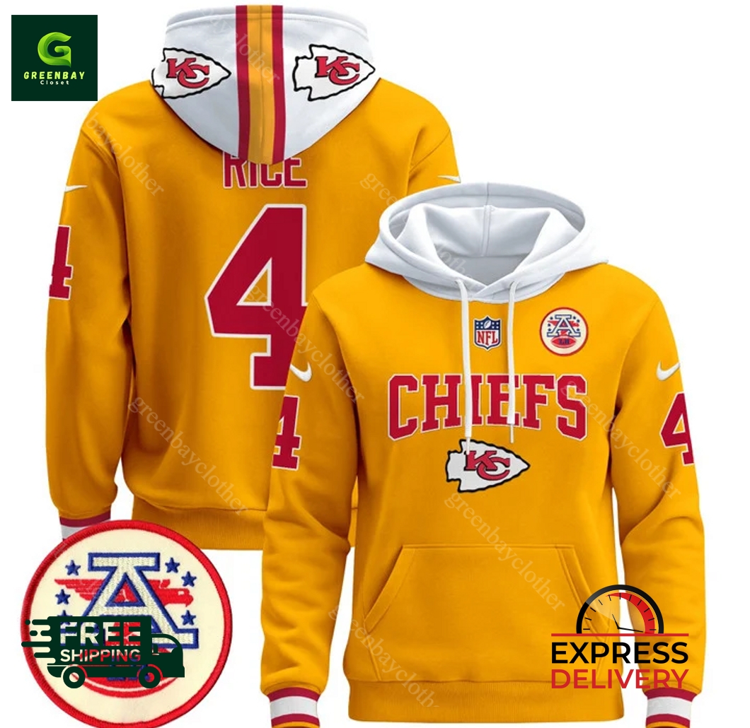 Kansas City Chiefs 2024 Rashee Rice Gold Pullover Hoodie product shipping: