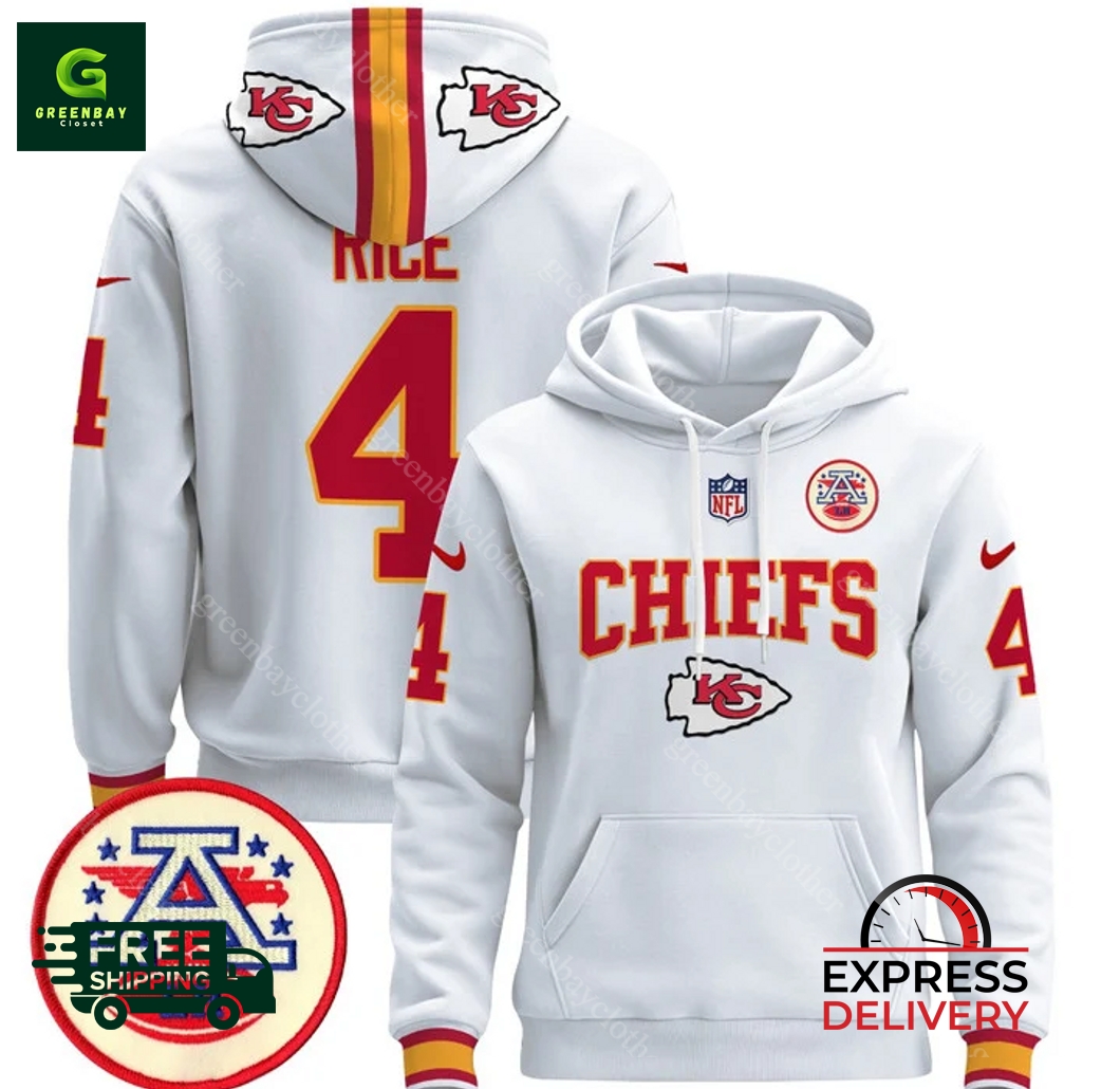 Get your wardrobe up to date with the best Kansas City Chiefs 2024 Rashee Rice White Pullover Hoodie on the market to help make you the ultimate fan. With the Chiefs logo and the name of future star Rashee Rice on it, this hoodie showcases both the steadfastness of the team and your steadfastness. This classic Chiefs hoodie is made of high-quality cotton and will ensure maximum comfort, whether you cuddle up and watch the game at home or wear it everywhere to show your Chiefs pride! Whether you have the crowd cheering at the stadium, hanging out with friends, or going about your day-to-day life, no one will miss you in it with its sleek white and classic design. It is in honor of a real Chiefs fan and owning the Kansas City Chiefs 2024 Rashee Rice White Empower Pullover Hoodie is to wear the legacy.