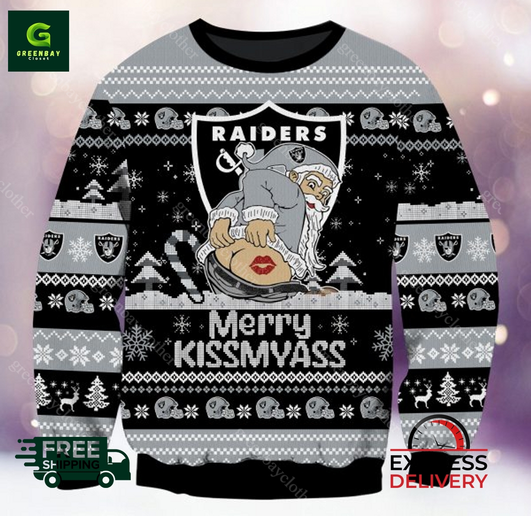 Las Vegas Raiders NFL Merry Kissmyass Knit Pattern Ugly Sweater product shipping: