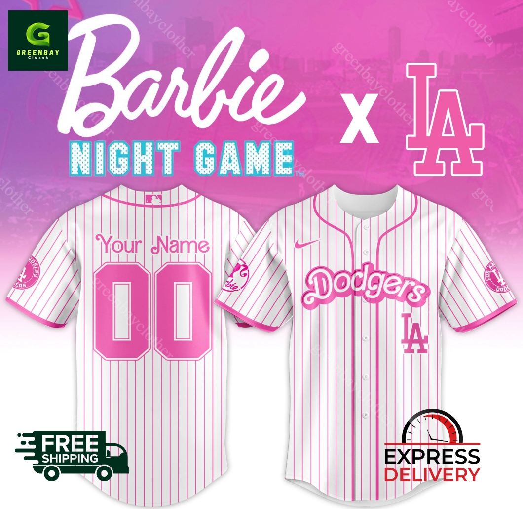 Los Angeles Dodgers x Barbie Night Game Personalized MLB Jersey product shipping: