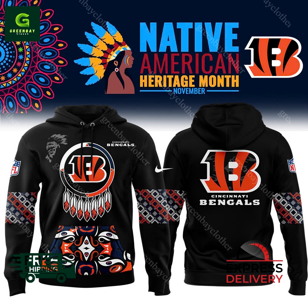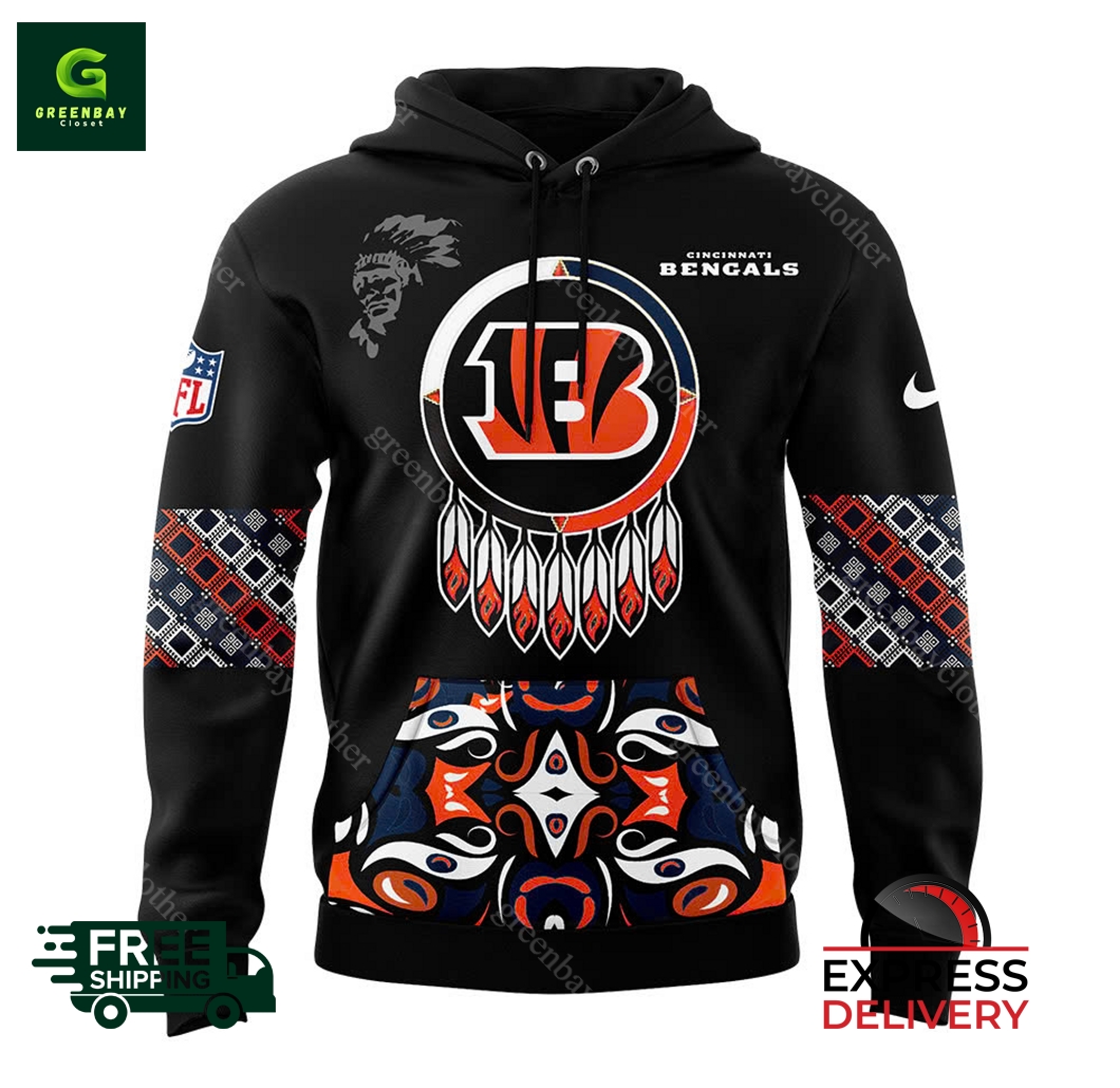 Introducing the ultimate tribute to the rich heritage of the Cincinnati Bengals and the Native American community: the Men’s Nike Cincinnati Bengals 2024 Native American Heritage Month Pullover Hoodie. This exceptional hoodie is crafted from the finest materials to deliver unmatched comfort and durability, ensuring you stay warm and stylish throughout the season. The vibrant graphic design showcases bold Bengals branding alongside intricate Native American motifs, honoring the team’s commitment to diversity and inclusion. Experience the perfect blend of sports pride and cultural appreciation with this premium-quality hoodie, proudly made in the United States and available for worldwide shipping. Embrace the spirit of Heritage Month and elevate your Bengals fandom to the next level with this must-have piece.