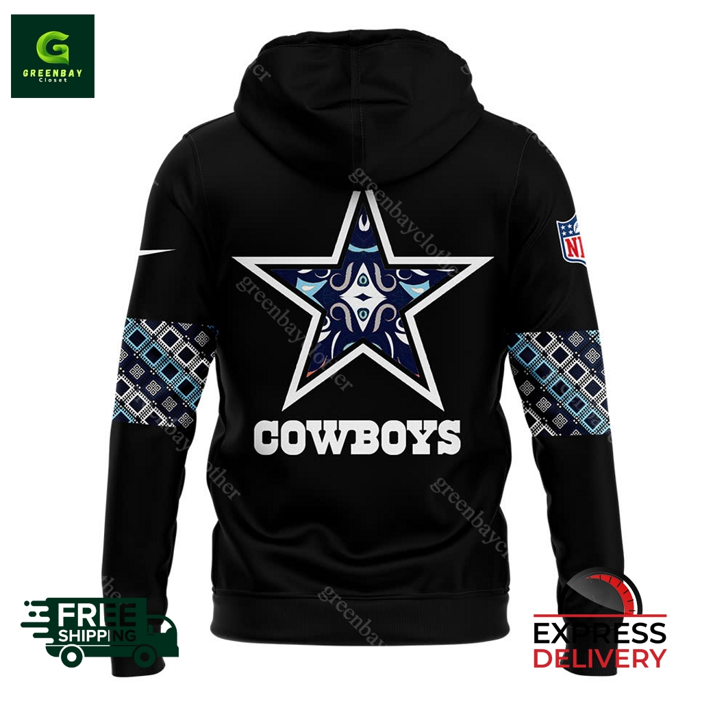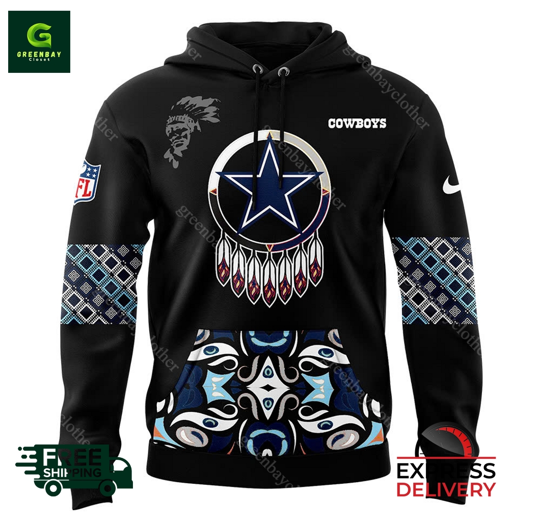 Introducing the exclusive Men’s Nike Dallas Cowboys 2024 Native American Heritage Month Pullover Hoodie! This stylish and meaningful hoodie celebrates the rich heritage of the Native American community with its vibrant design featuring traditional patterns and colors. Crafted from premium fabric, it offers unmatched comfort and warmth, making it perfect for casual outings, gatherings with friends, or everyday wear. Its adjustable hood and kangaroo pocket provide additional functionality, while the bold Dallas Cowboys logo proudly adorns the chest. By owning this hoodie, you not only show your support for your favorite team but also embrace the cultural significance and heritage of the Native American people. Imagine the admiring glances you’ll receive as you step out in this stunning hoodie, reflecting both your style and your appreciation for diversity.