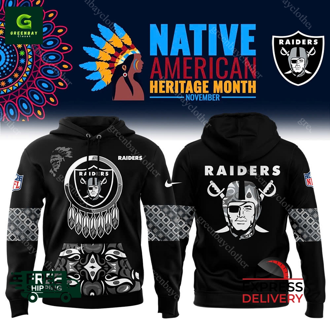 Elevate your Raiders spirit with the officially licensed Nike Las Vegas Raiders 2024 Native American Heritage Month Pullover Hoodie. Crafted from premium fabric, this hoodie exudes both comfort and style. Its vibrant graphics pay homage to the rich Native American heritage celebrated during this special month. The bold Raiders logo on the chest and commemorative Native American design on the sleeve proudly display your unwavering support for the Silver and Black. This limited-edition hoodie is not only a fashion statement but a meaningful symbol of unity and respect. Embrace the spirit of Native American Heritage Month with this exclusive gear, brought to you by Nike, the official uniform supplier of the NFL. Order now and experience the unbeatable combination of quality, style, and affordability. With our easy return policy and volume discounts, the more you buy, the greater the savings!