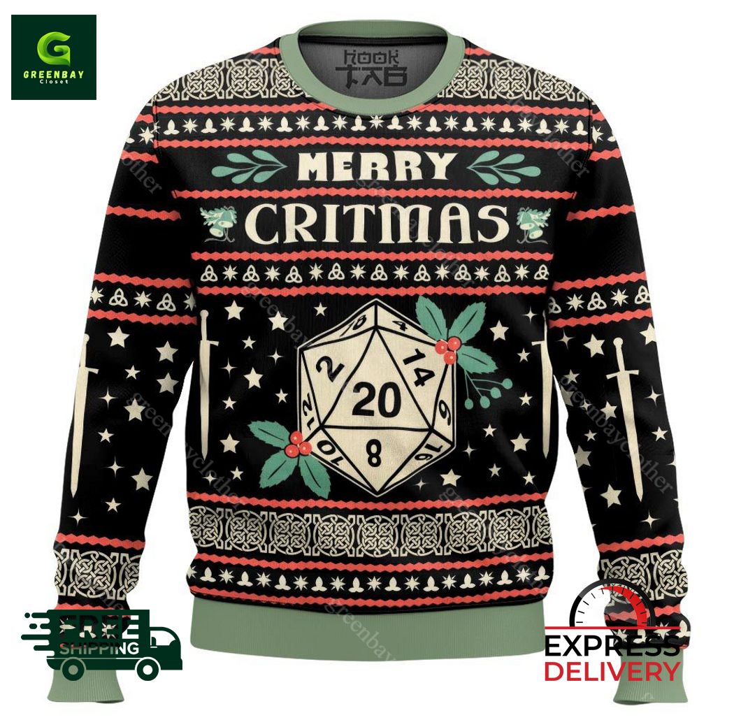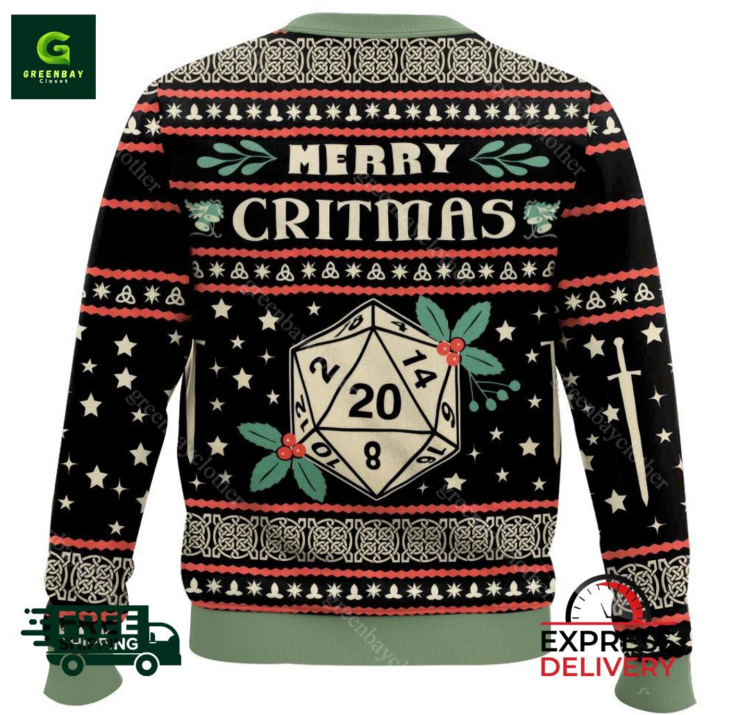 Merry Critmas Dungeons & Dragons Ugly Christmas Sweater Key features: