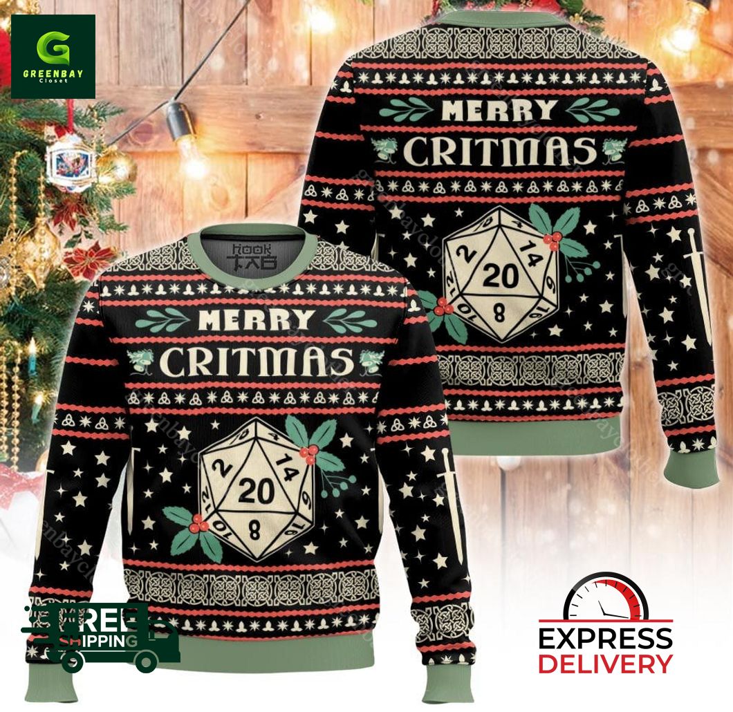 Merry Critmas Dungeons & Dragons Ugly Christmas Sweater product shipping: