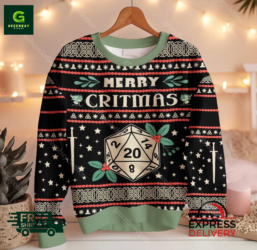 Merry Critmas Dungeons & Dragons Ugly Christmas Sweater description