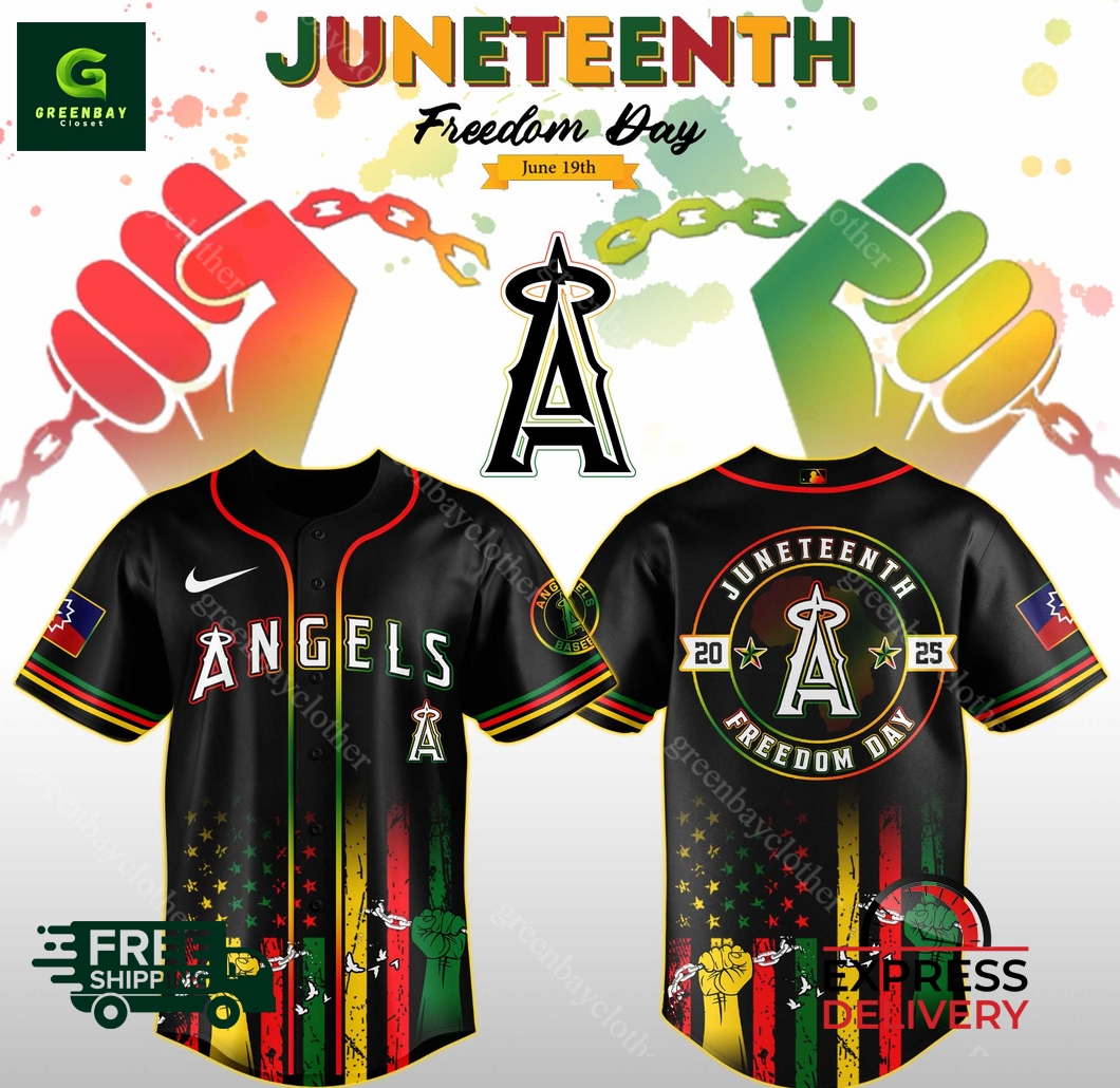 Click here to learn more and purchase your MLB Los Angeles Angels Juneteenth Freedom Day 2025 Baseball Jersey today!