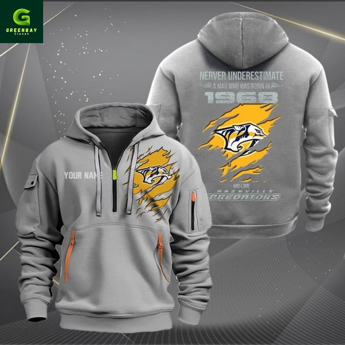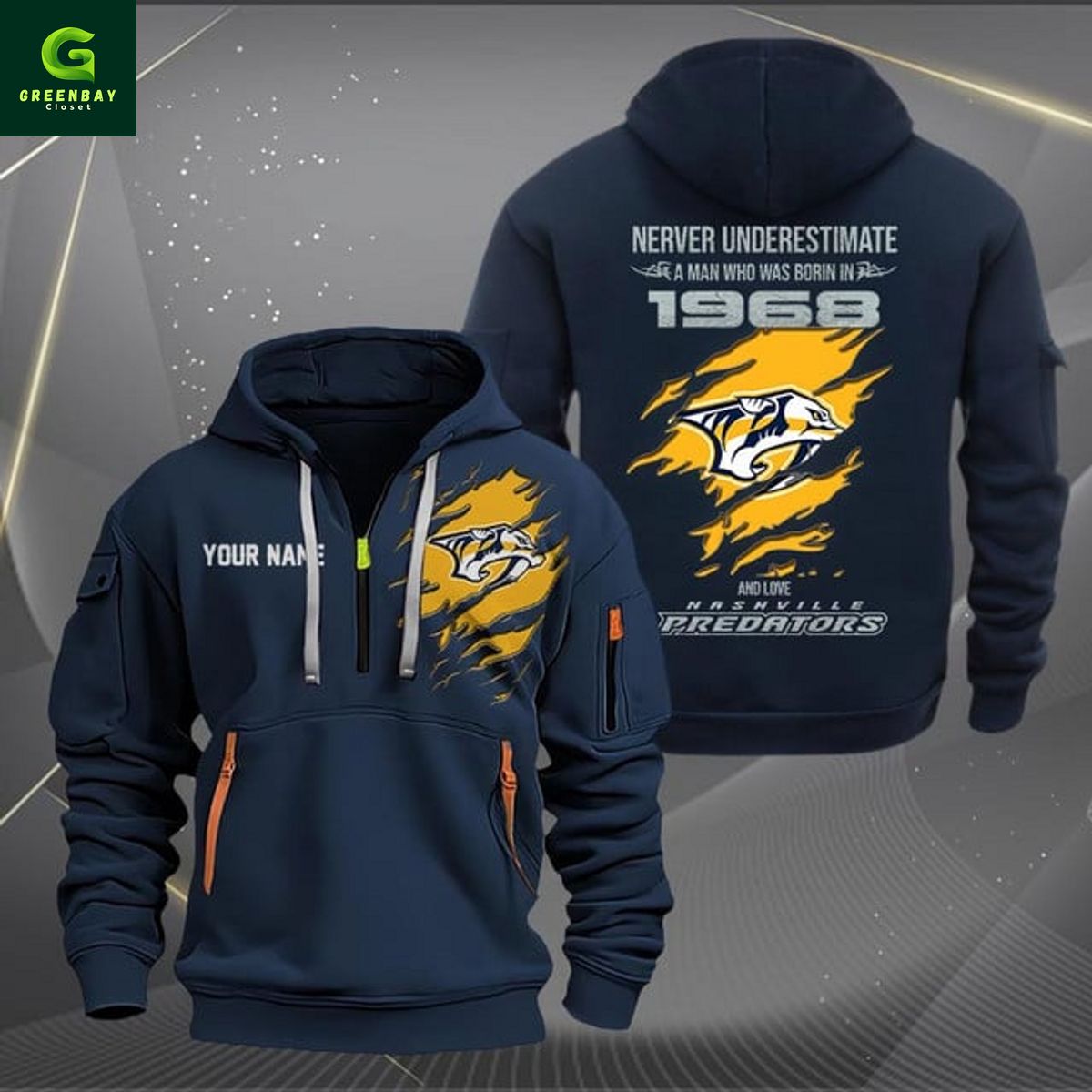 Key features Nashville Predators NHL Never Underestimate Born 1968 Personalized Heavy Hoodie: