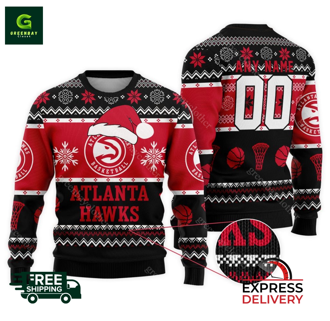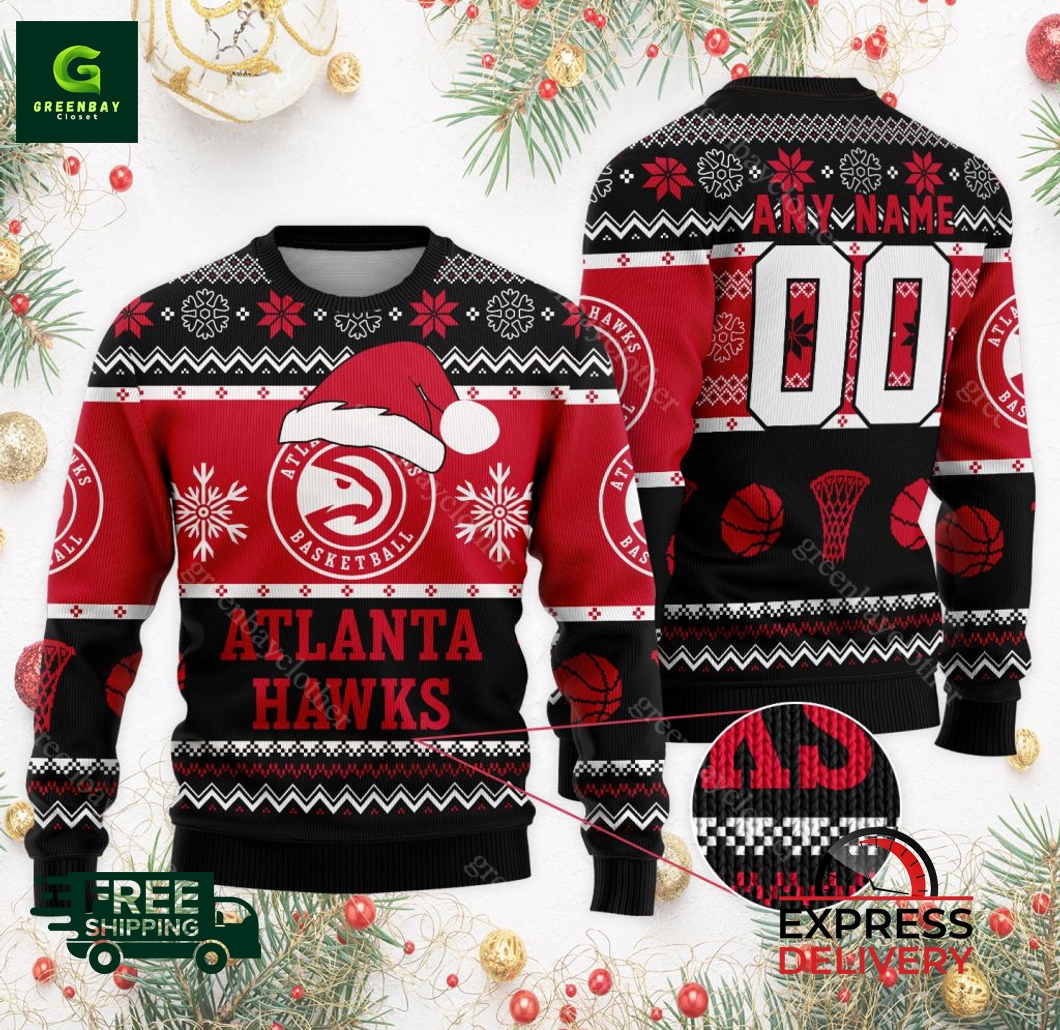 NBA Atlanta Hawks Personalized Christmas Ugly Sweater description