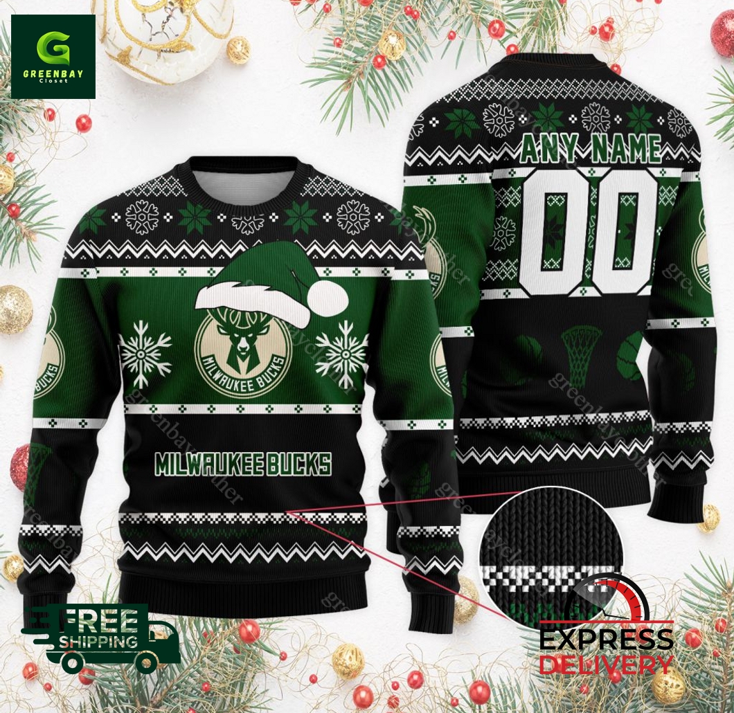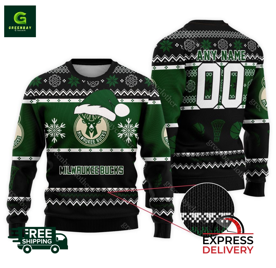 Are you ready to show off your Bucks pride in a festive and unique way? Look no further than our personalized NBA Milwaukee Bucks Christmas ugly sweater, the must-have holiday apparel for any true fan. Crafted from premium materials, this sweater features a vibrant print of the iconic Bucks logo, adorned with cheerful Christmas motifs. Personalize it with your name and number, making it an exclusive and meaningful keepsake. Perfect for cozying up at home, attending holiday parties, or cheering on your team at the game, the cozy and comfortable design will keep you warm and stylish all season long. And with our affordable prices and bulk discounts, you can spread the Bucks cheer without breaking the bank. Plus, our hassle-free return policy ensures your complete satisfaction. Get ready to turn heads and embrace the holiday spirit with our NBA Milwaukee Bucks Personalized Christmas ugly sweater!