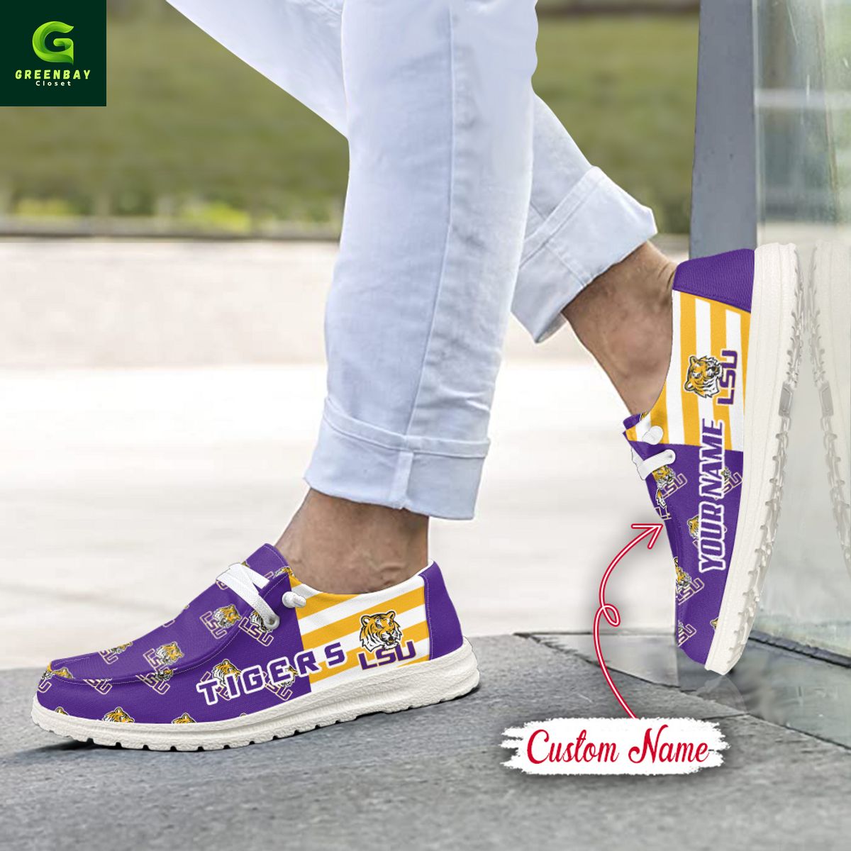 NCAA LSU Tigers Custom Name Hey Dude Shoes