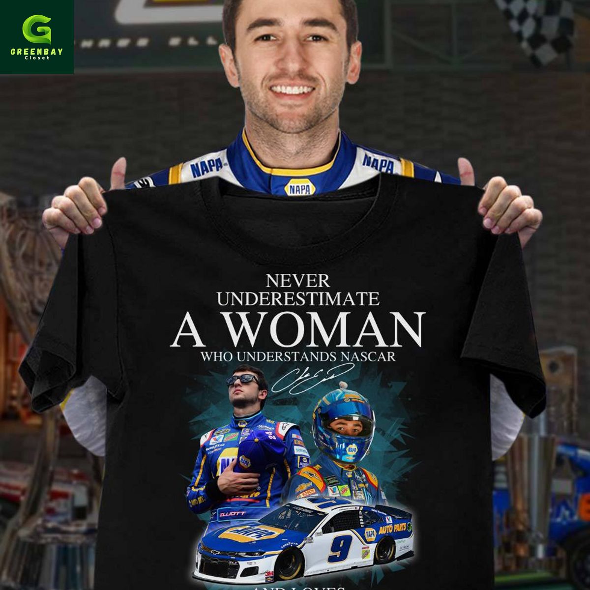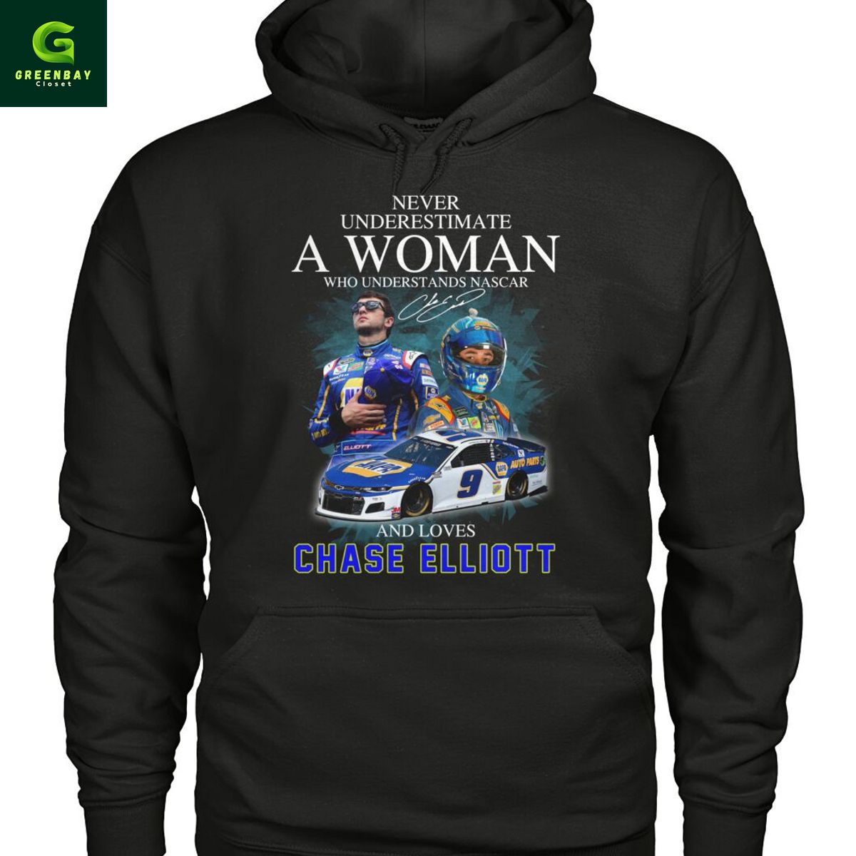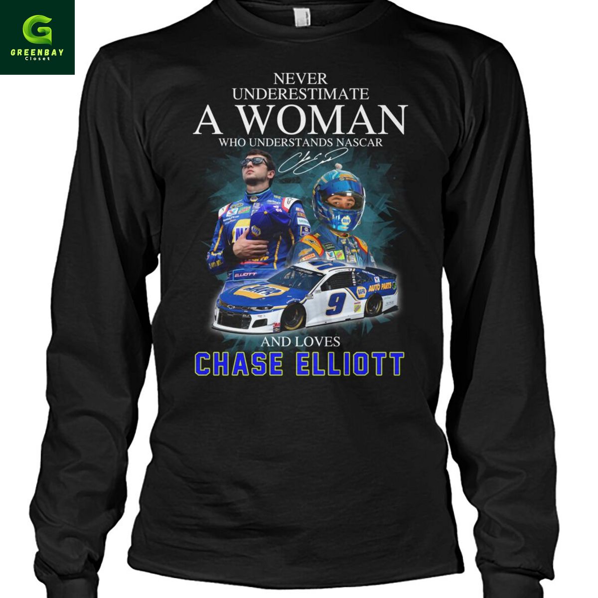 Never underestimate a woman who understands Nascar and loves Chase Elliott shirt description
