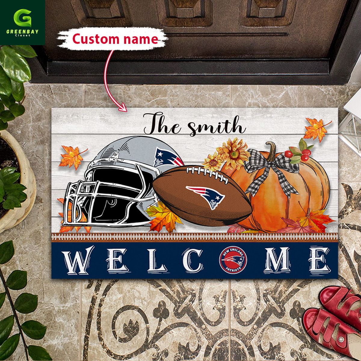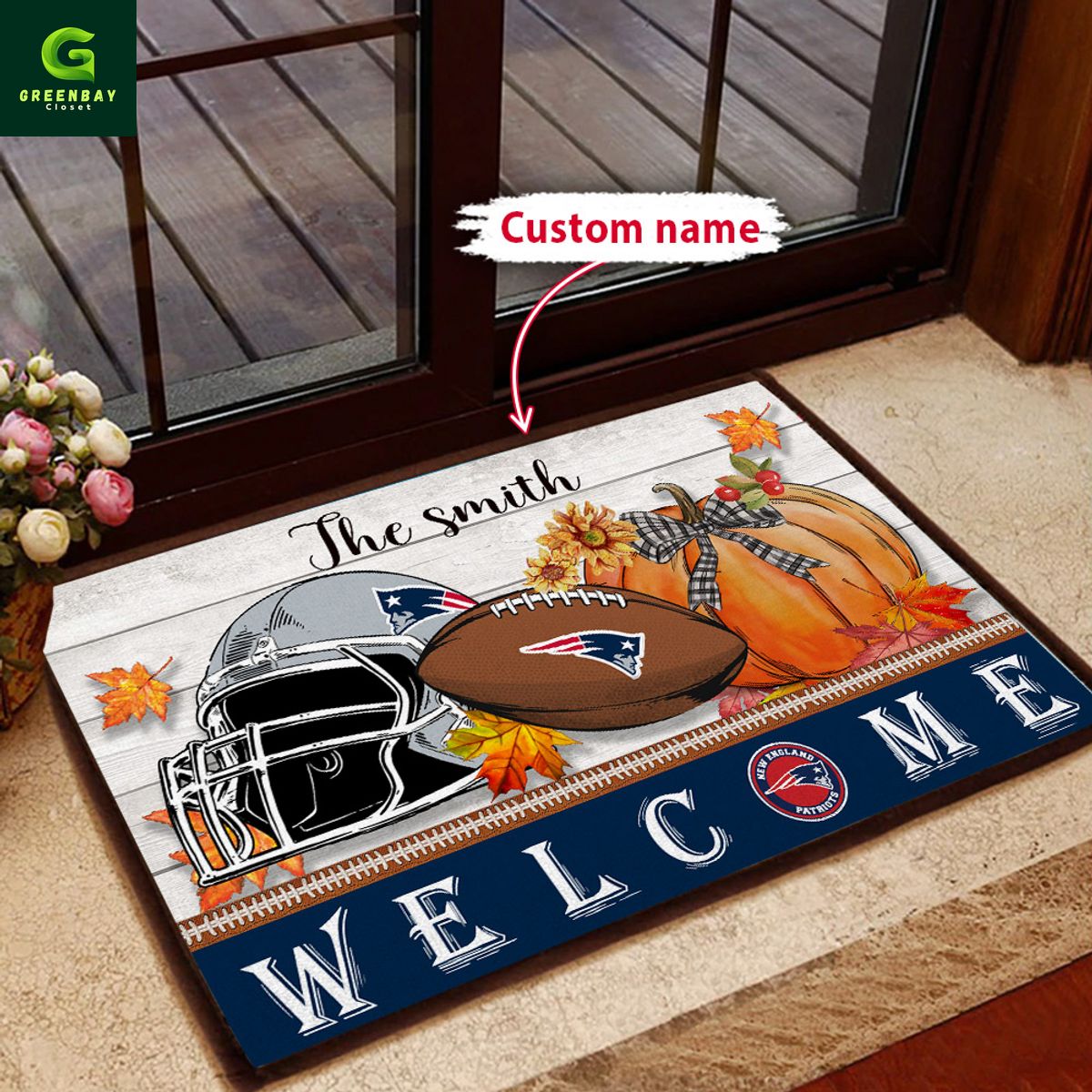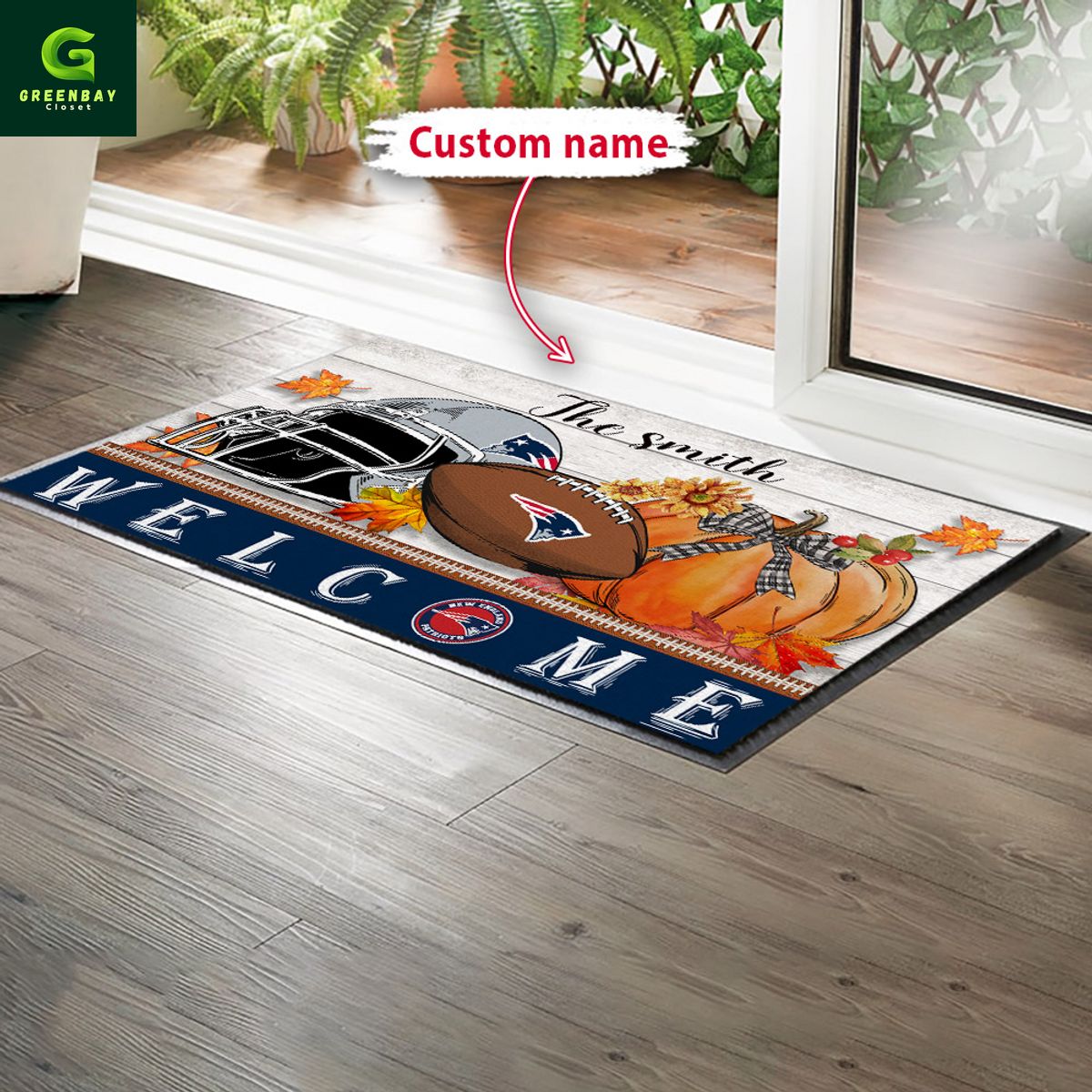 New England Patriots Football Season Fall Garden Doormat description