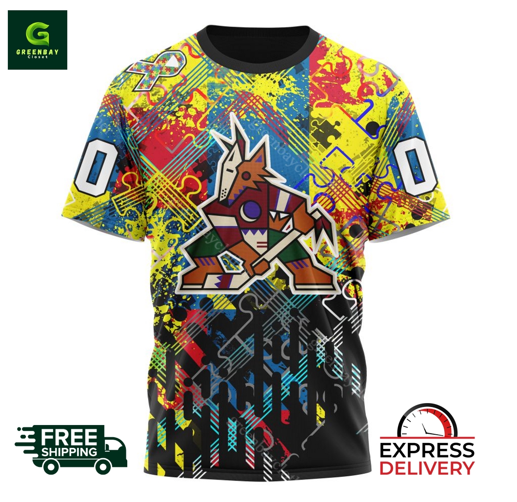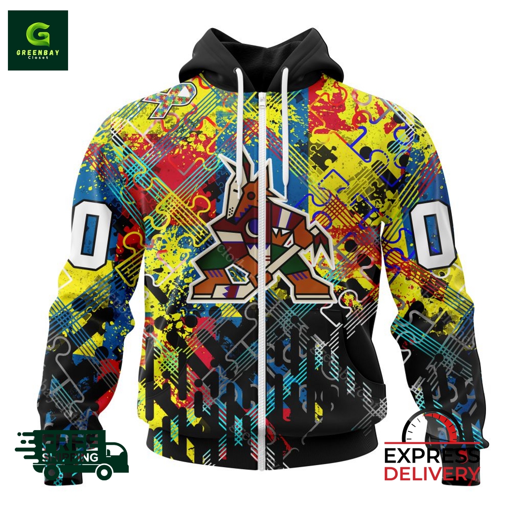 Suitable for a variety of occasions NHL Arizona Coyotes Autism Awareness Personalized Hoodie: