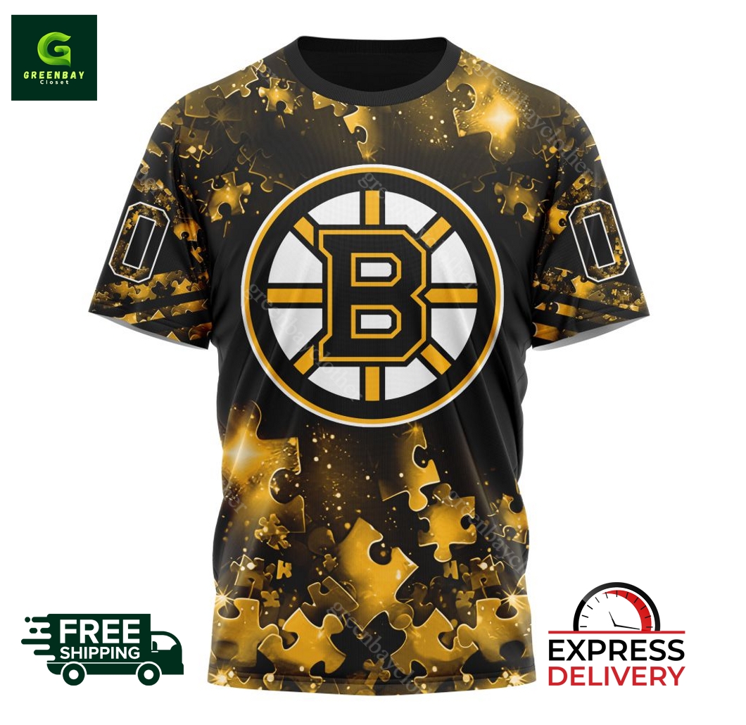 Introducing the Boston Bruins Special Autism Awareness Hoodie, proudly handcrafted in the heart of the United States. This exceptional hoodie not only celebrates your passion for the Bruins but also raises awareness for autism. Its ultra-soft fabric, featuring a stunning Bruins logo, ensures ultimate comfort and style. The bold blue and gold design with the iconic “Autism Speaks” puzzle piece ribbon symbolizes our commitment to supporting those affected by this condition. Each hoodie is meticulously made with durable materials, ensuring longevity and impeccable quality. By donning this hoodie, you not only represent your favorite team but also join the movement towards greater understanding and acceptance. With every purchase, a portion of the proceeds is donated to organizations dedicated to autism awareness and support, making a positive impact while sporting your Bruins pride. Order now and embrace the spirit of inclusivity while showcasing your love for the Boston Bruins. Global shipping is available, ensuring that fans worldwide can experience the warmth and comfort of this exceptional piece.