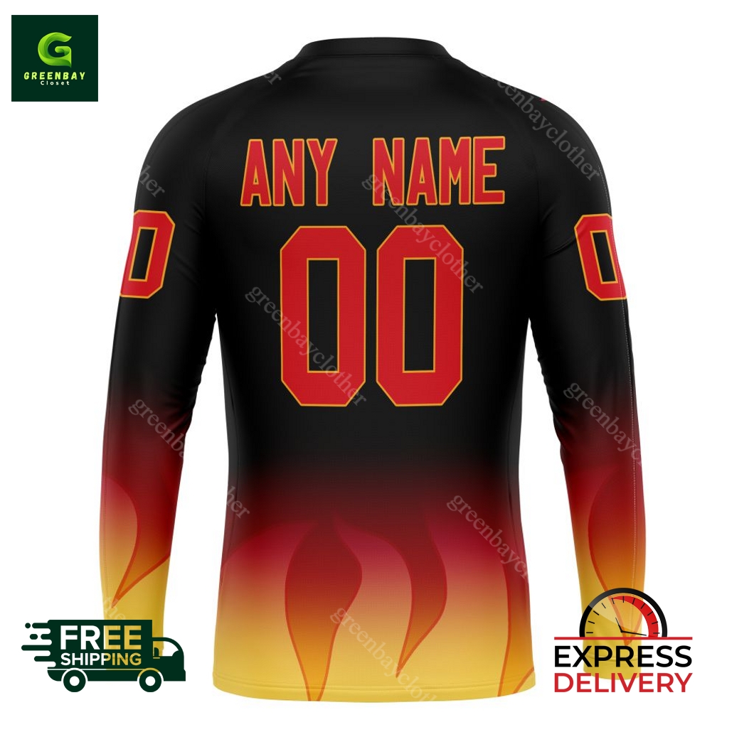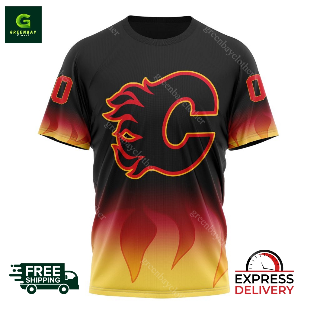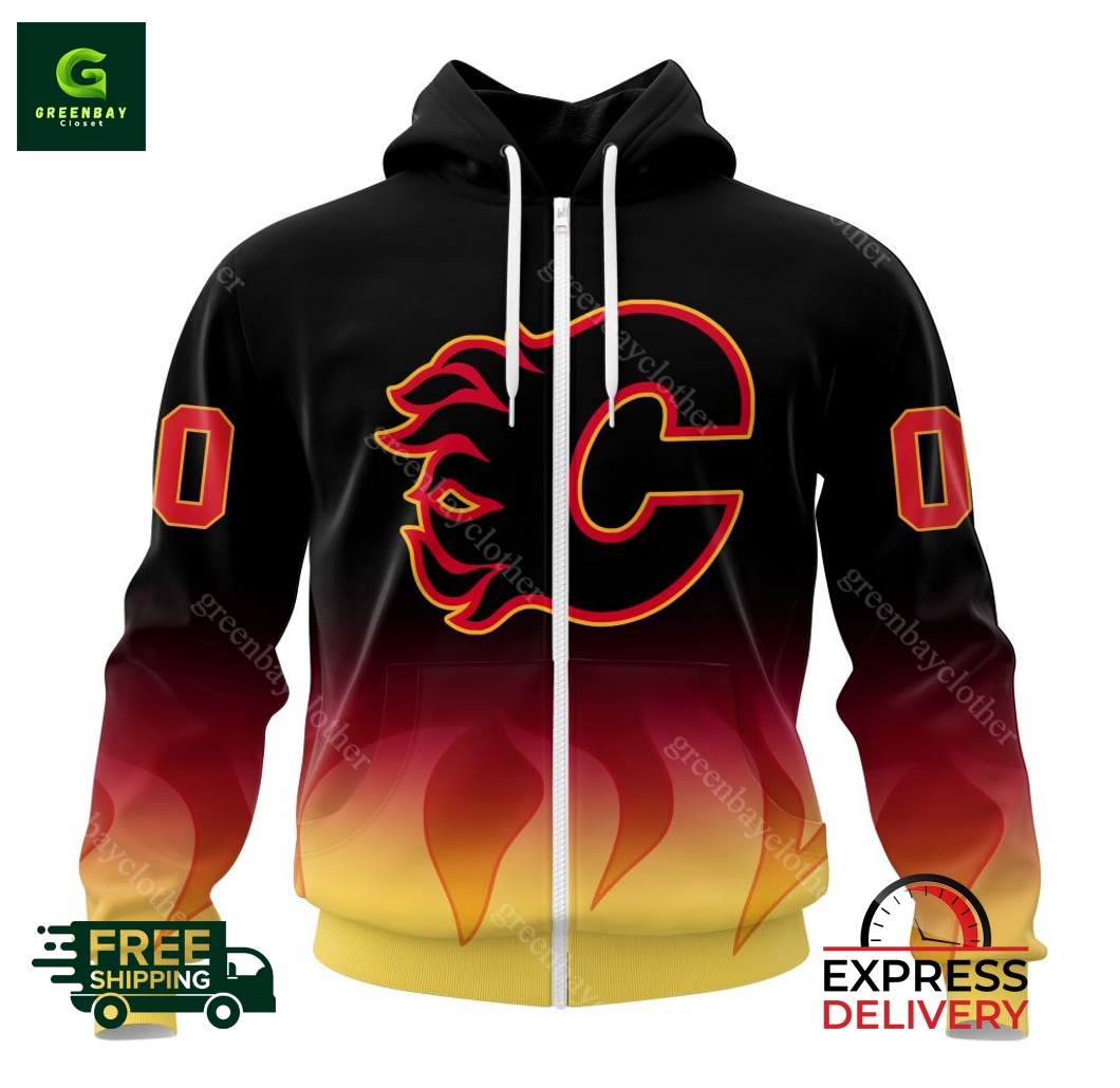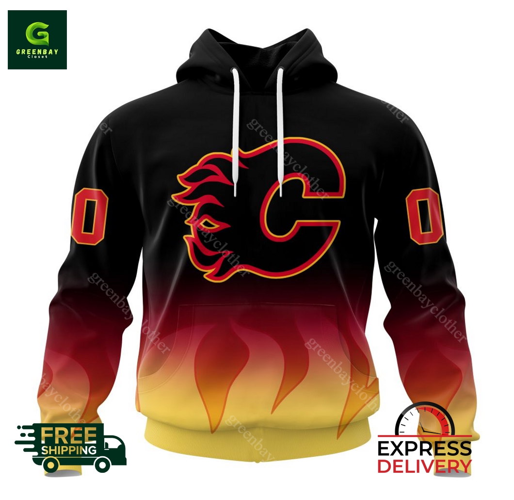 NHL Calgary Flames Special Bold Design Hoodie Made in America This is a high-quality and durable hoodie made from high-quality materials. The vibrant Flames logo and team colors makes this a bold design that will turn heads everywhere you travel. Whether you’re rooting for your squad from the rink or just out in your hockey colors, this hoodie is the only way to rep. It also features a comfy shape, and its soft fabric will keep you looking chic and warm all season long. Show your Flame spirit with a unique piece of gear that helps you stand out from the pack. Oh, and you can even display your team spirit anywhere you want with worldwide shipping!