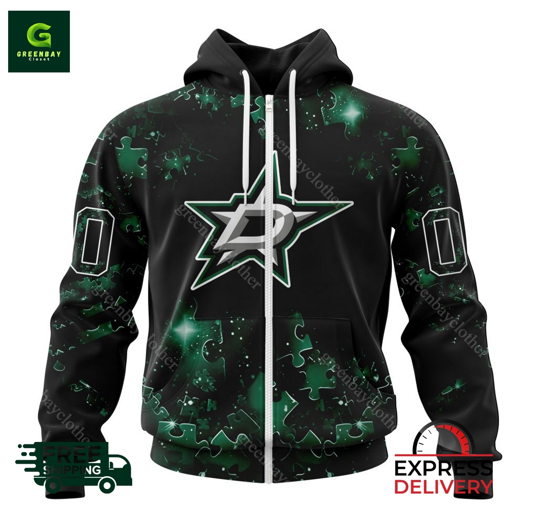 Introduce our exceptional NHL Dallas Stars Special Autism Awareness Hoodie, meticulously designed to honor individuals with autism and support their well-being. Crafted with the utmost care, this hoodie combines style and purpose, offering unparalleled comfort and quality at an unbeatable price. As a proud supporter of autism awareness, we strive to create inclusive and welcoming spaces for all. Our hoodie represents our commitment to spreading acceptance, promoting understanding, and celebrating the unique abilities of individuals with autism. Whether you’re a passionate fan of the Dallas Stars or simply seeking a meaningful way to show your support, this hoodie is the perfect choice. Experience the exceptional quality, affordable pricing, and global shipping options that set us apart. Join us in making a positive impact and embrace the spirit of autism awareness with our NHL Dallas Stars Special Autism Awareness Hoodie.