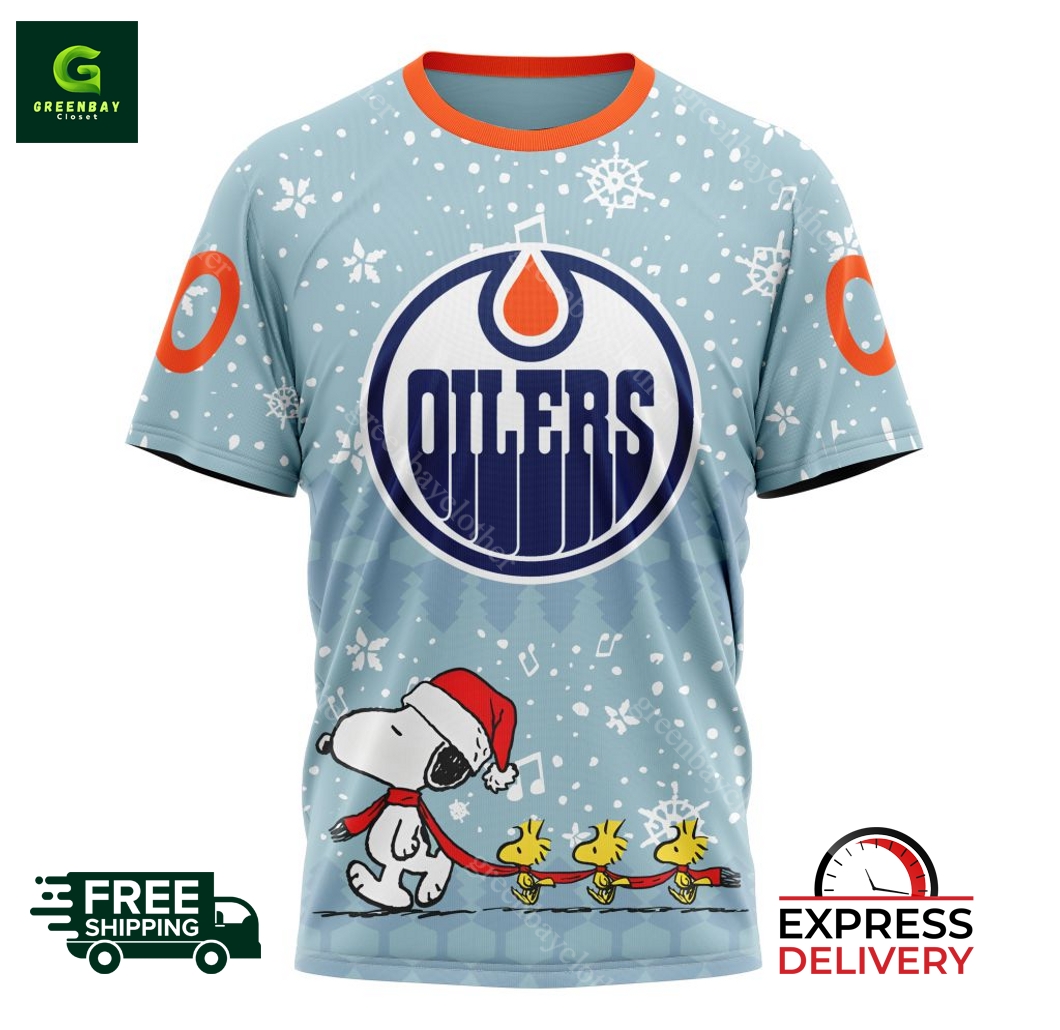 NHL Edmonton Oilers Peanuts Christmas Design Hoodie
