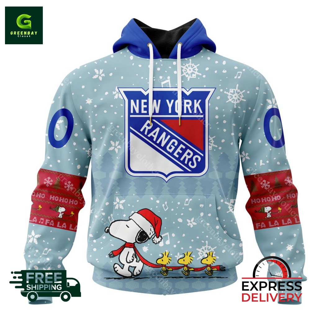 NHL New York Rangers Peanuts Christmas Design Hoodie description
