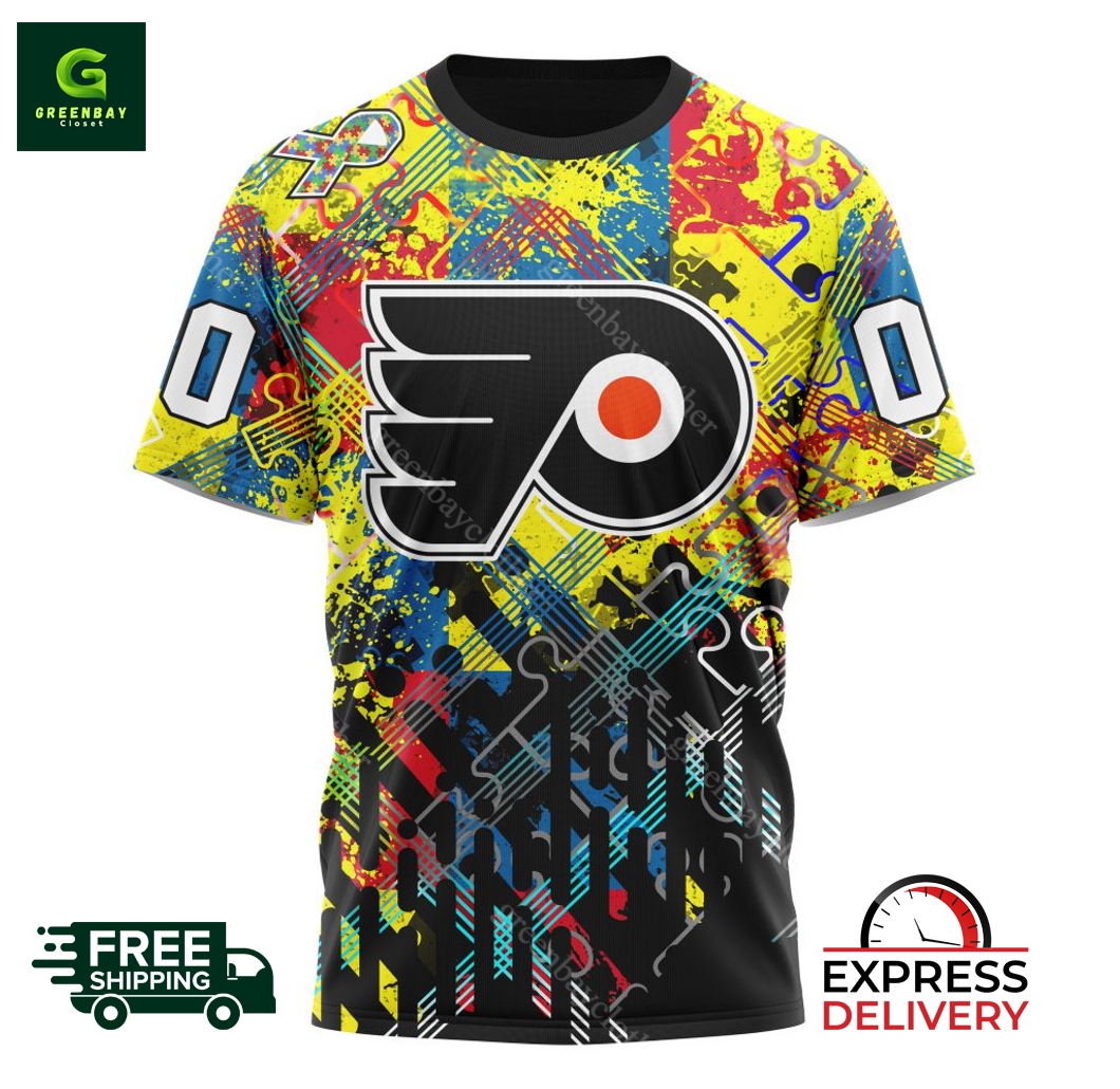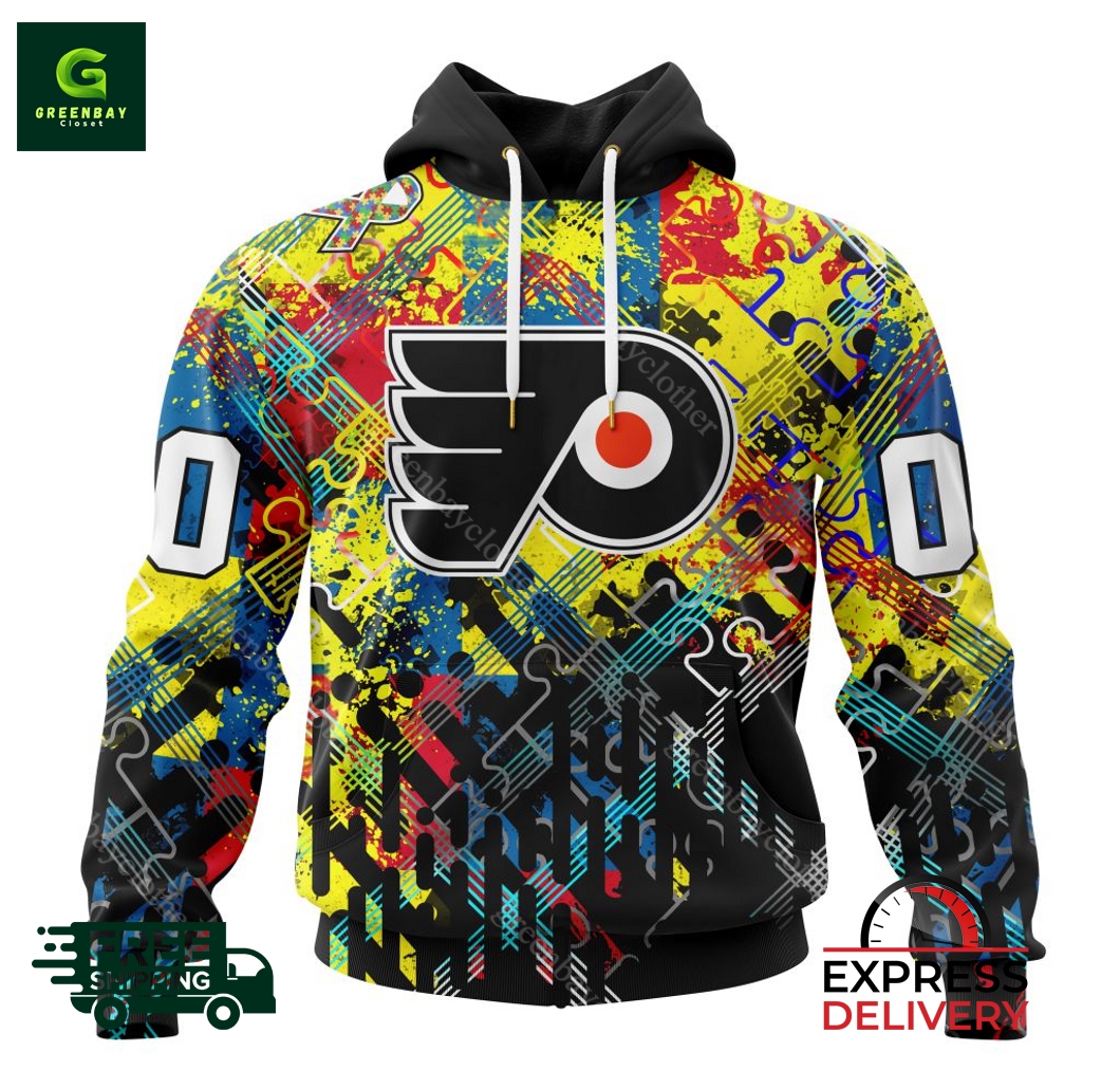 Here is a personalized hoodie that provides awareness for the Flyers and Autism called our NHL Philadelphia Flyers Autism Awareness Personalized Hoodie. Made of high-quality material, this high-quality hoodie is ultra-soft and ultra-durable material. With the popular Flyers logo on display, this hoodie features your loved one’s name and number and displays your team spirit while representing Autism awareness! With our competitive pricing, it is made available to all, and our quality policy assures that you get the best bang for your buck. We are located in the United States and ship worldwide, so you can spread the message of autism awareness worldwide. All of your purchases play a role in raising awareness for autism and helping those afflicted.