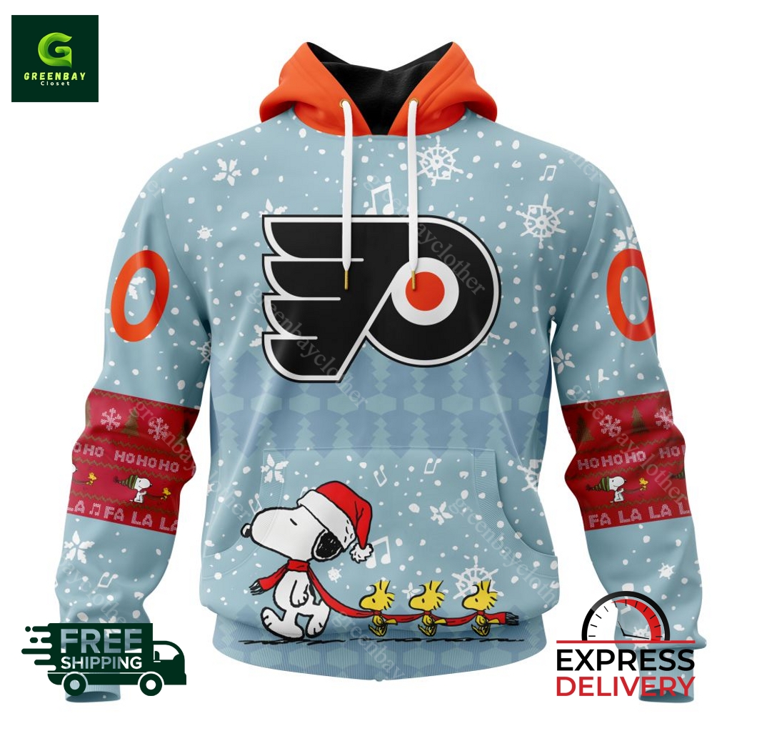Key features NHL Philadelphia Flyers Peanuts Christmas Design Hoodie: