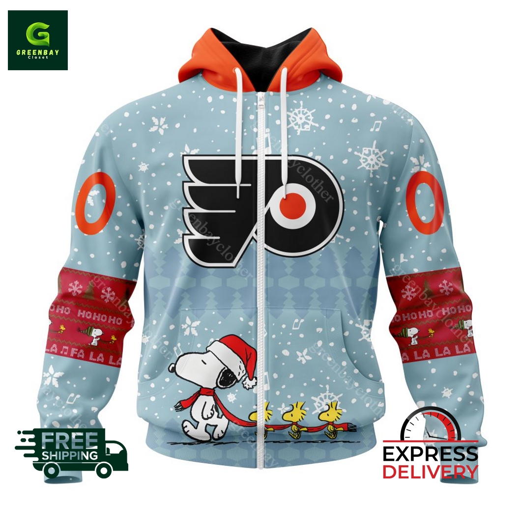 NHL Philadelphia Flyers Peanuts Christmas Design Hoodie description