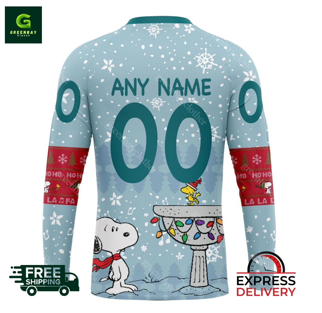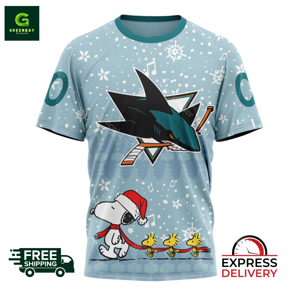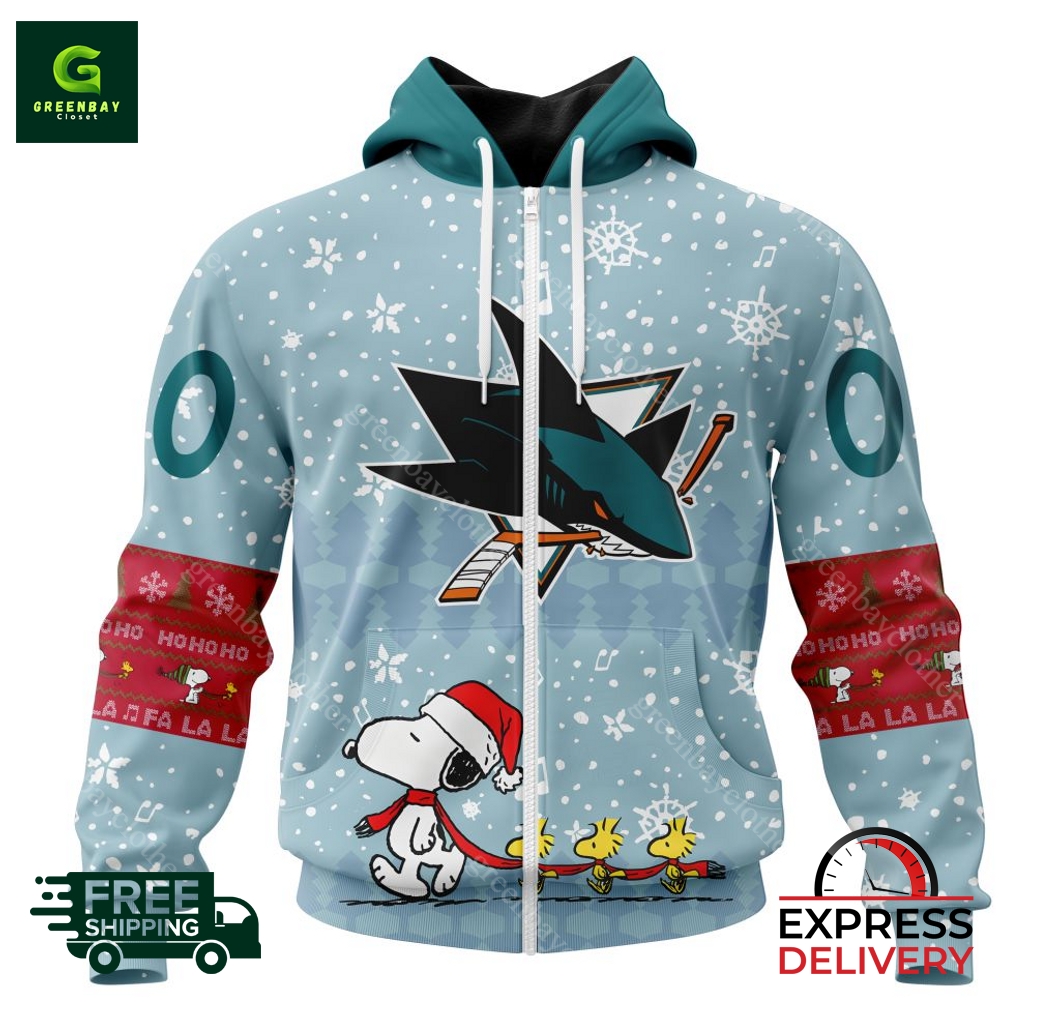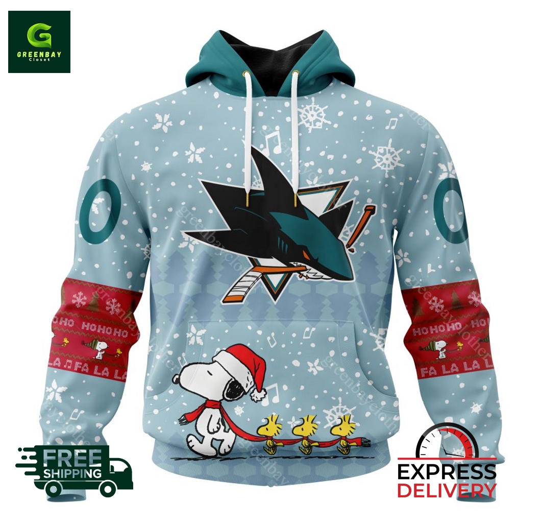NHL San Jose Sharks Peanuts Christmas Design Hoodie description