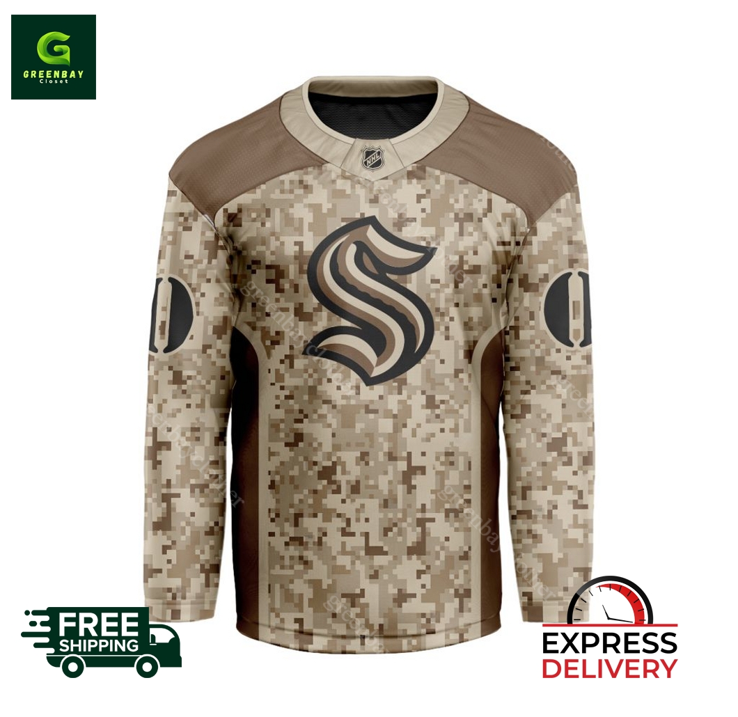 NHL Seattle Kraken Desert Camouflage Personalized Hockey Jersey product shipping: