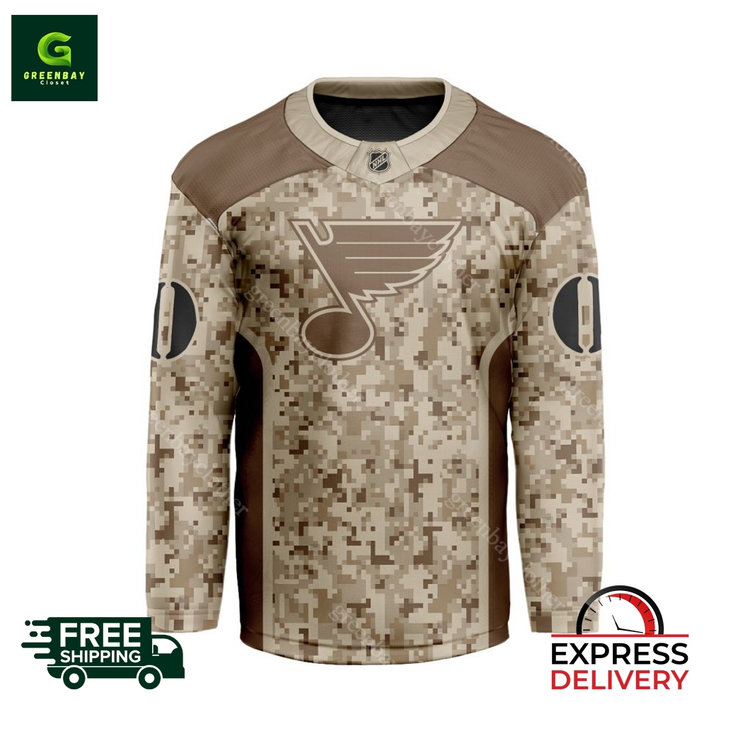 NHL St. Louis Blues Desert Camouflage Personalized Hockey Jersey product shipping: