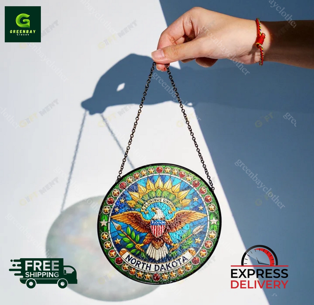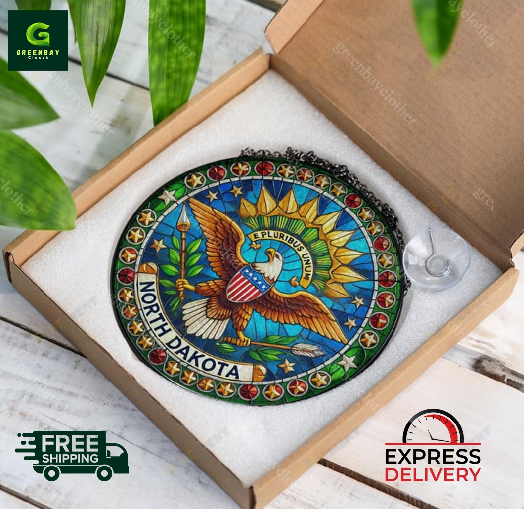 North Dakokta State Stained Glass Suncatcher product shipping: