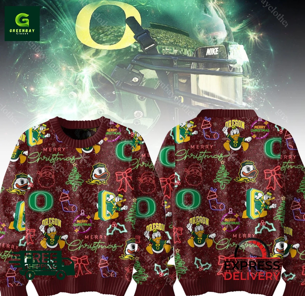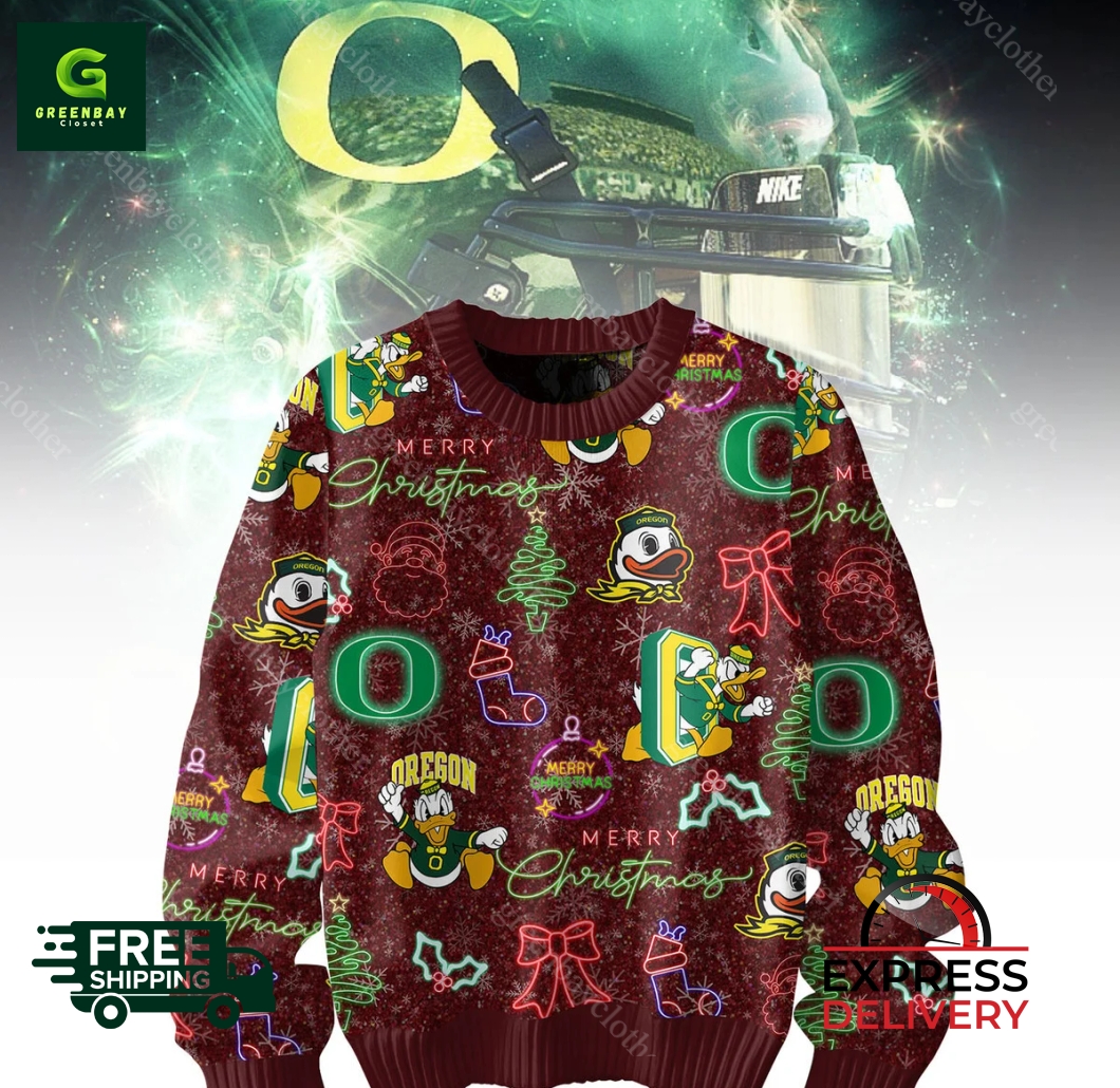 Oregon Ducks Merry Christmas Ugly Christmas Sweater description