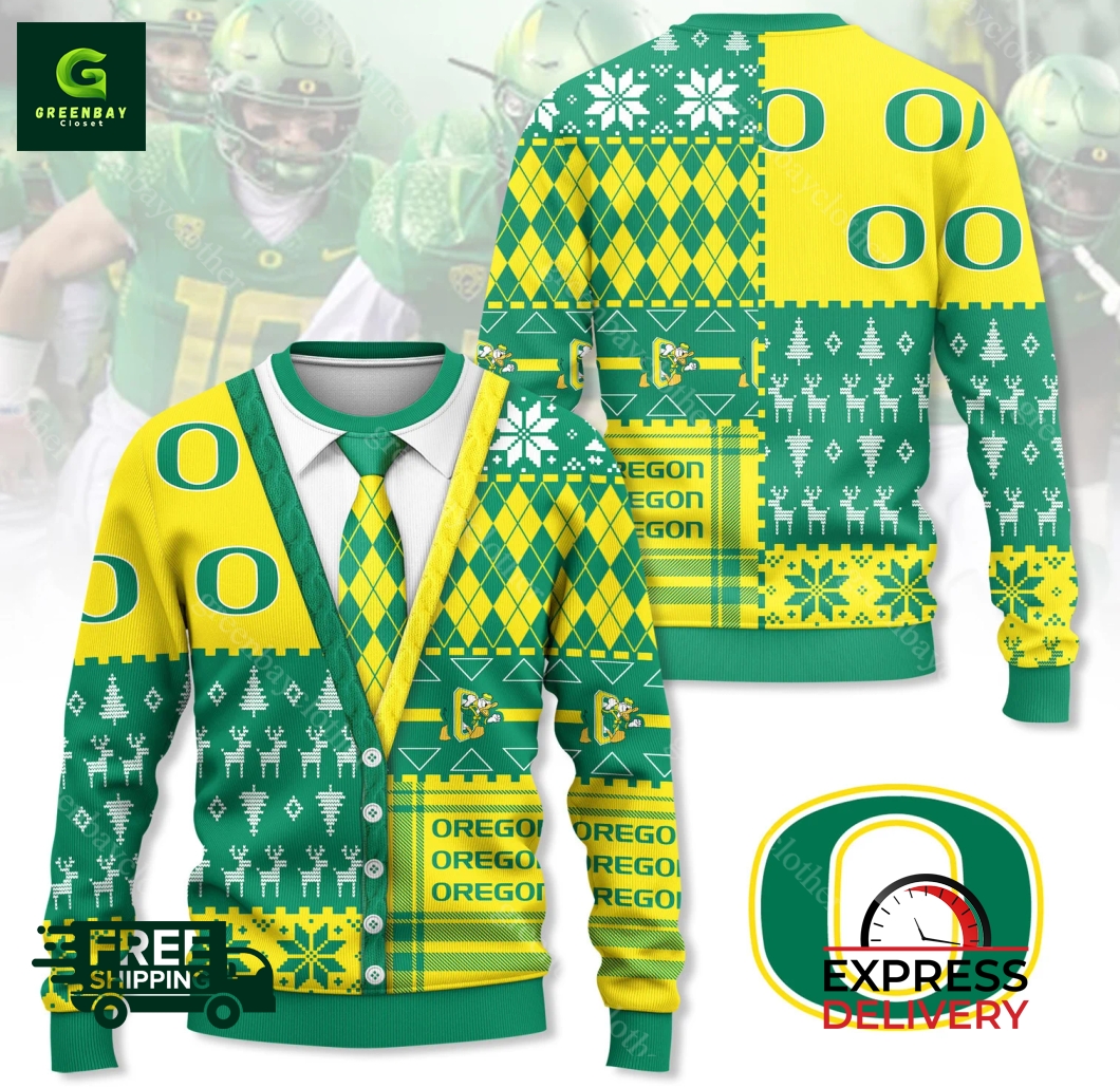 Introducing the ultimate holiday wardrobe staple: the Oregon Ducks Vest Tie Ugly Christmas Sweater! With its vibrant colors and eye-catching Oregon Ducks logo, this festive sweater is guaranteed to turn heads wherever you go. Crafted with premium materials, our sweater ensures both comfort and durability, making it the perfect choice for all your holiday festivities. The unique vest tie design adds a touch of sophistication to the classic ugly sweater look, making it a perfect blend of style and tradition. Whether you’re attending an ugly sweater party or simply spreading holiday cheer, the Oregon Ducks Vest Tie Ugly Christmas Sweater is the perfect festive addition to your wardrobe. Priced at an unbeatable value and shipped directly from the United States, we offer global shipping to bring this holiday must-have straight to your doorstep. Experience the perfect combination of quality, style, and affordability with the Oregon Ducks Vest Tie Ugly Christmas Sweater.