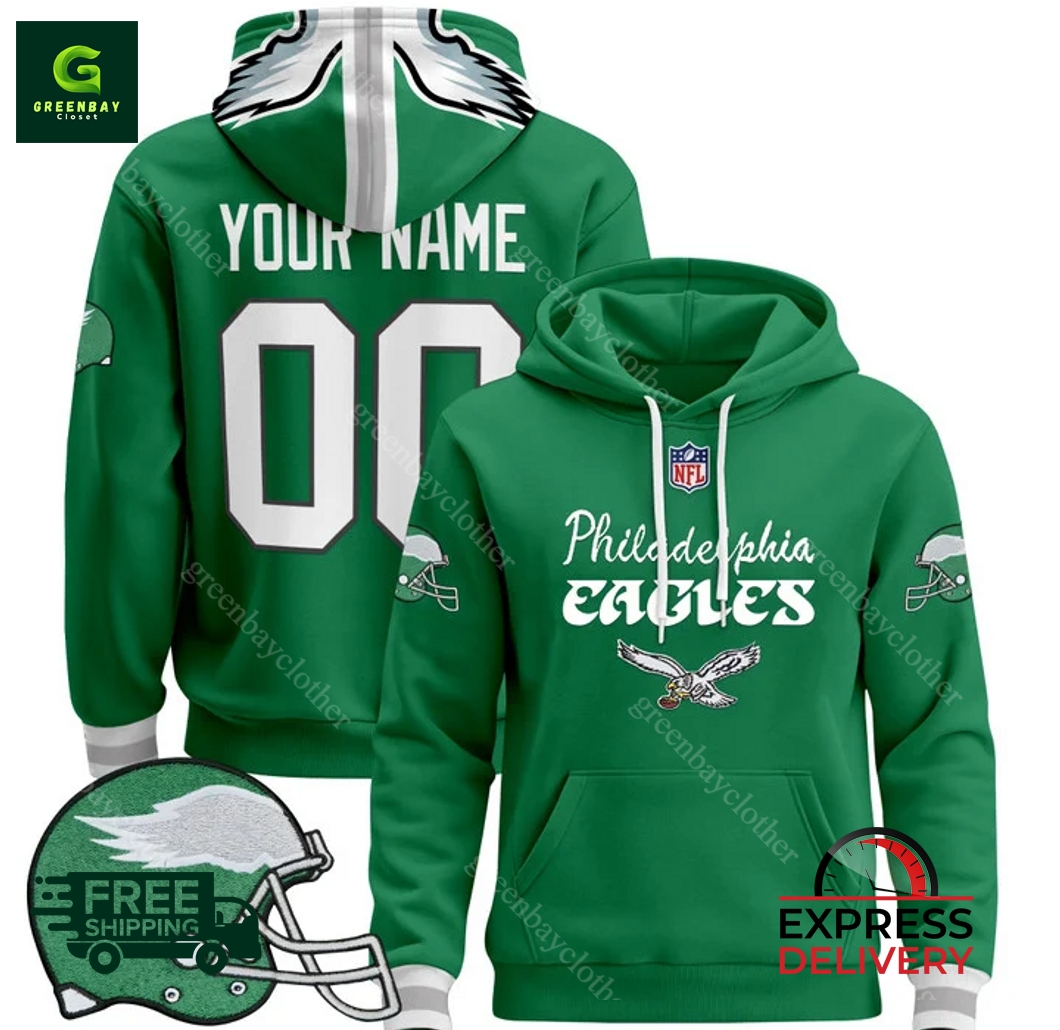 Philadelphia Eagles 2024 Custom Kelly Green Pullover Hoodie product shipping: