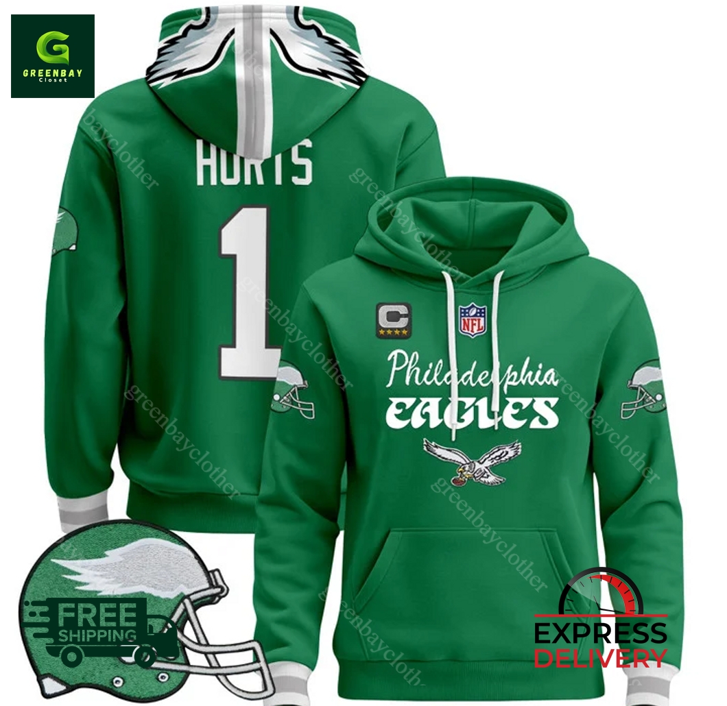 Philadelphia Eagles 2024 Jalen Hurts Kelly Green Hoodie product shipping: